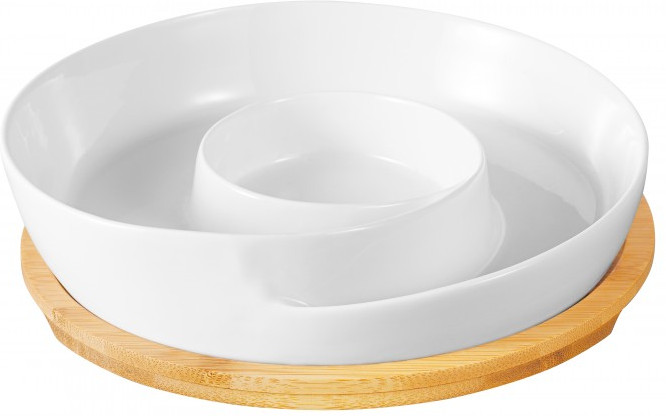 Серия: Улитка Тарелка сервировочная-менажница Elan Gallery «Улитка» размером 23×23×5 см и объёмом 450 мл выполнена из белого фарфора. Имеет в комплекте подставку из натурального бамбука. Представляет собой цельное глубокое блюдо необычной формы, напоминающей улитку. Тарелка подходит для сервировки и подачи различных закусок: сырной и мясной нарезки, канапе или роллов. Сервировочное блюдо пригодится, чтобы создать идеальную атмосферу для приема гостей или романтического ужина дома. Благодаря отдельным секциям вы можете использовать одну и ту же тарелочку для солений, оливок, сыра и колбасы. Такой подход к сервировке позволит сэкономить место на вашем столе. |