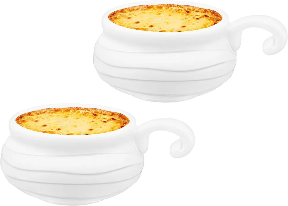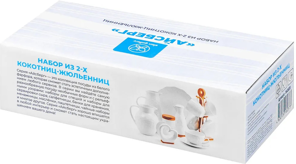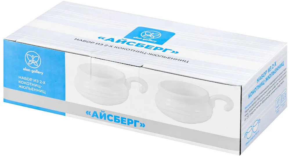 Набор из двух жюльенниц-кокотниц Elan Gallery выполнен из белого фарфора в классическом дизайне. Посуда серии украшена рельефным узором в виде листьев. Размер каждой жюльенницы — 14×10,5×5,5 см, объём — 300 мл. Формы можно использовать как для приготовления жюльена, так и для разнообразных десертов, кондитерских и кулинарных изделий. Красивые жюльенницы после приготовления можно сразу подавать на стол. Фарфоровая посуда отличается от керамической повышенной плотностью.