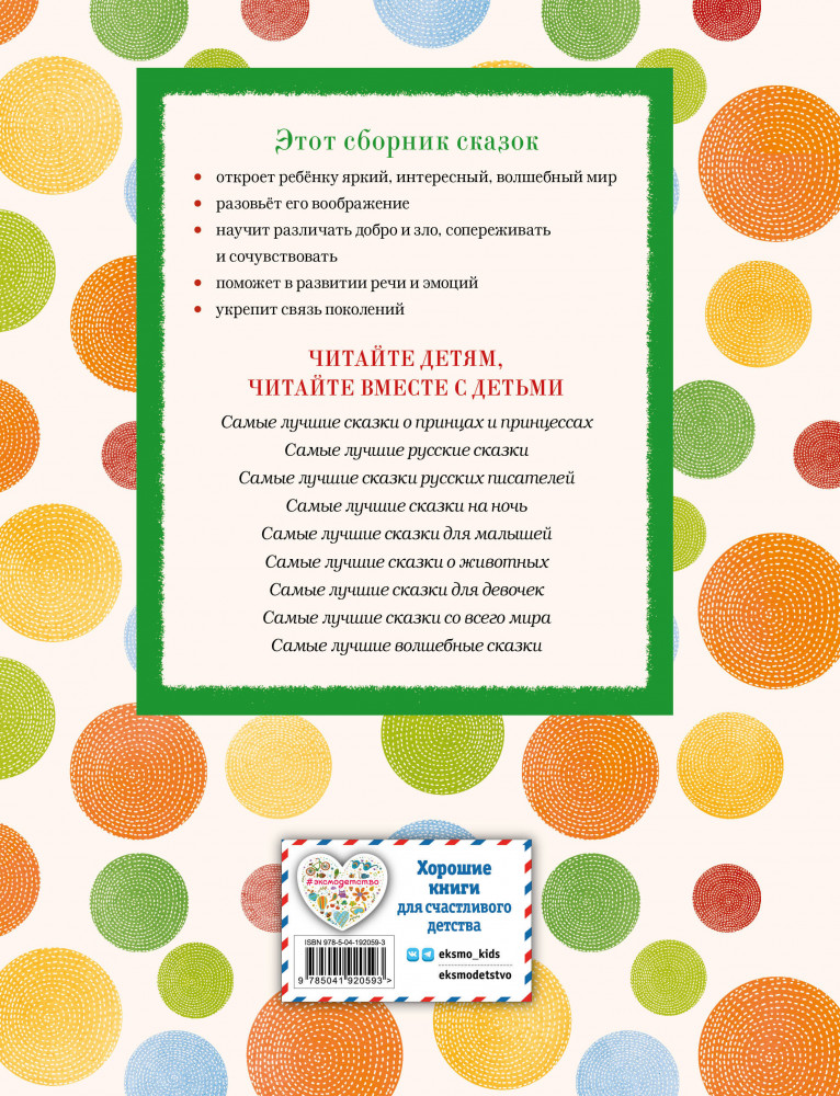 Серия: Самые лучшие сказки дочкам и сыночкам В яркую, богато иллюстрированную серию «Самые лучшие сказки дочкам и сыночкам» вошли лучшие сказки, от народных до литературных! Сказки — это неизменные спутники детства, подготавливающие ребёнка к встрече с большим миром. В серии вы найдёте самые лучшие сказки, собранные в различные сборники: для самых маленьких, сказки о животных, сказки русских писателей, волшебные сказки и многие-многие другие. |