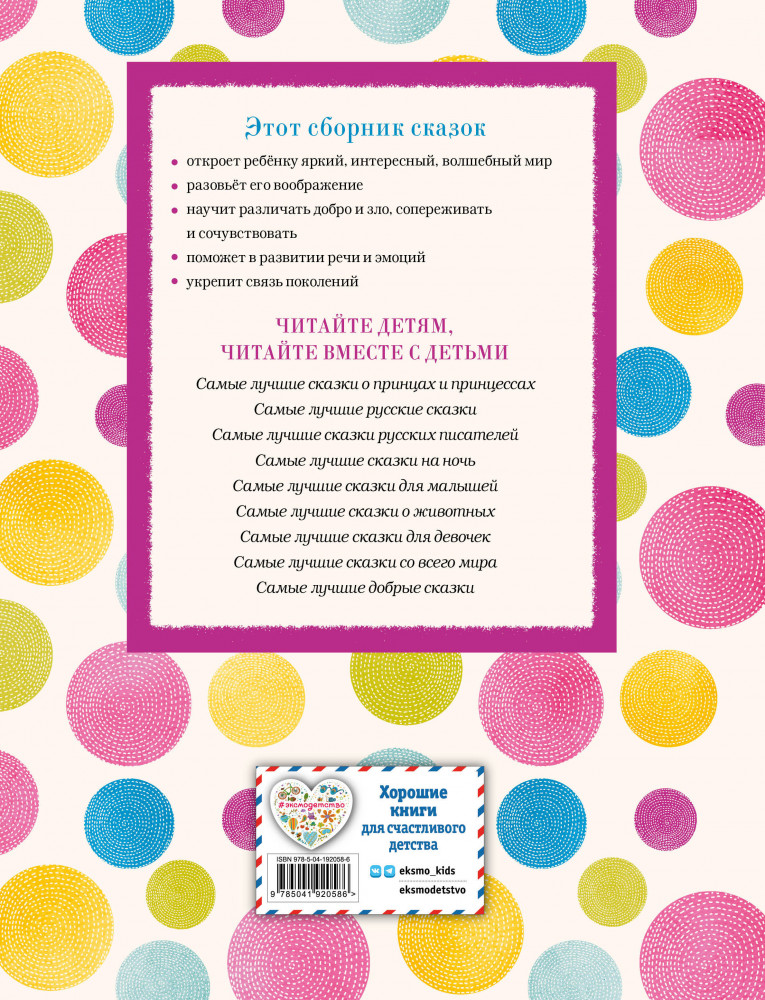 Серия: Самые лучшие сказки дочкам и сыночкам В яркую, богато иллюстрированную серию «Самые лучшие сказки дочкам и сыночкам» вошли лучшие сказки, от народных до литературных! Сказки — это неизменные спутники детства, подготавливающие ребёнка к встрече с большим миром. В серии вы найдёте самые лучшие сказки, собранные в различные сборники: для самых маленьких, сказки о животных, сказки русских писателей, волшебные сказки и многие-многие другие. |
