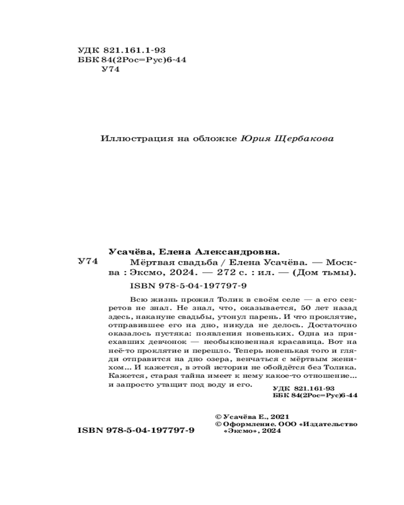 Серия: Детск. Дом тьмы Кто же откажется напугать новеньких? Вот Толик и не отказался. Взял да и притворился утопленником! Девчонки, конечно, испугались. Но потом... Потом началось странное. Оказалось, что утопленник в этом озере уже есть. Настоящий. Полвека назад местный парень утонул рядом с селом накануне свадьбы. И проклятие, отправившее его на дно, ещё живо. Оно проснулось. И, кажется, нашло способ вновь отнять чью-то жизнь... Или даже две. Красавица-новенькая и Толик отлично ему подойдут! |