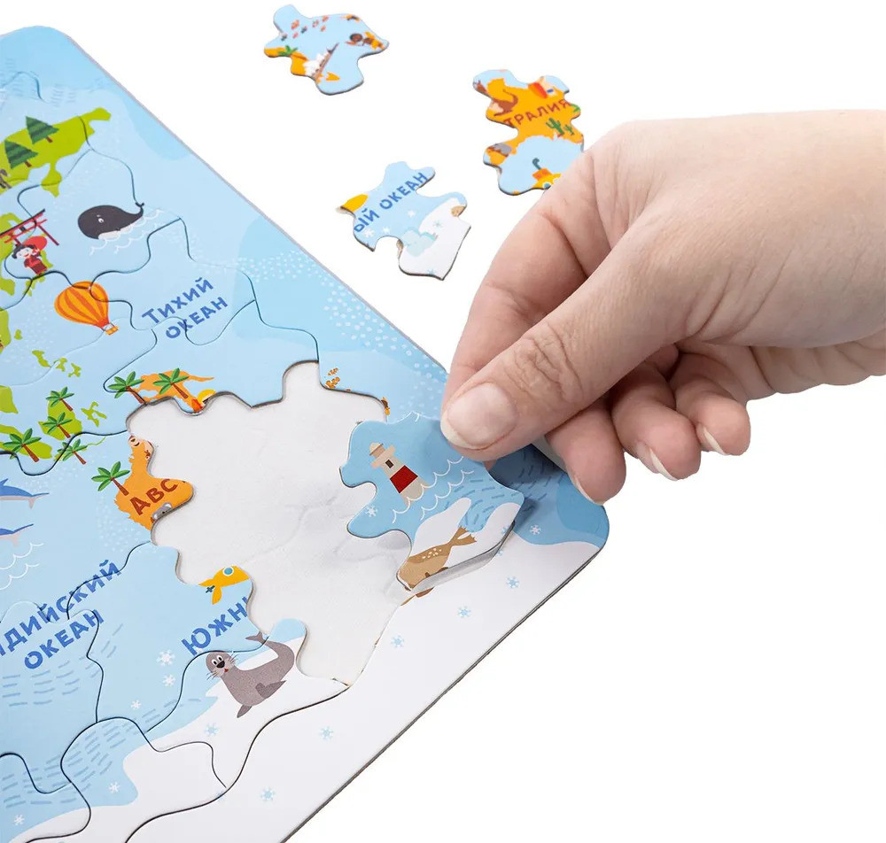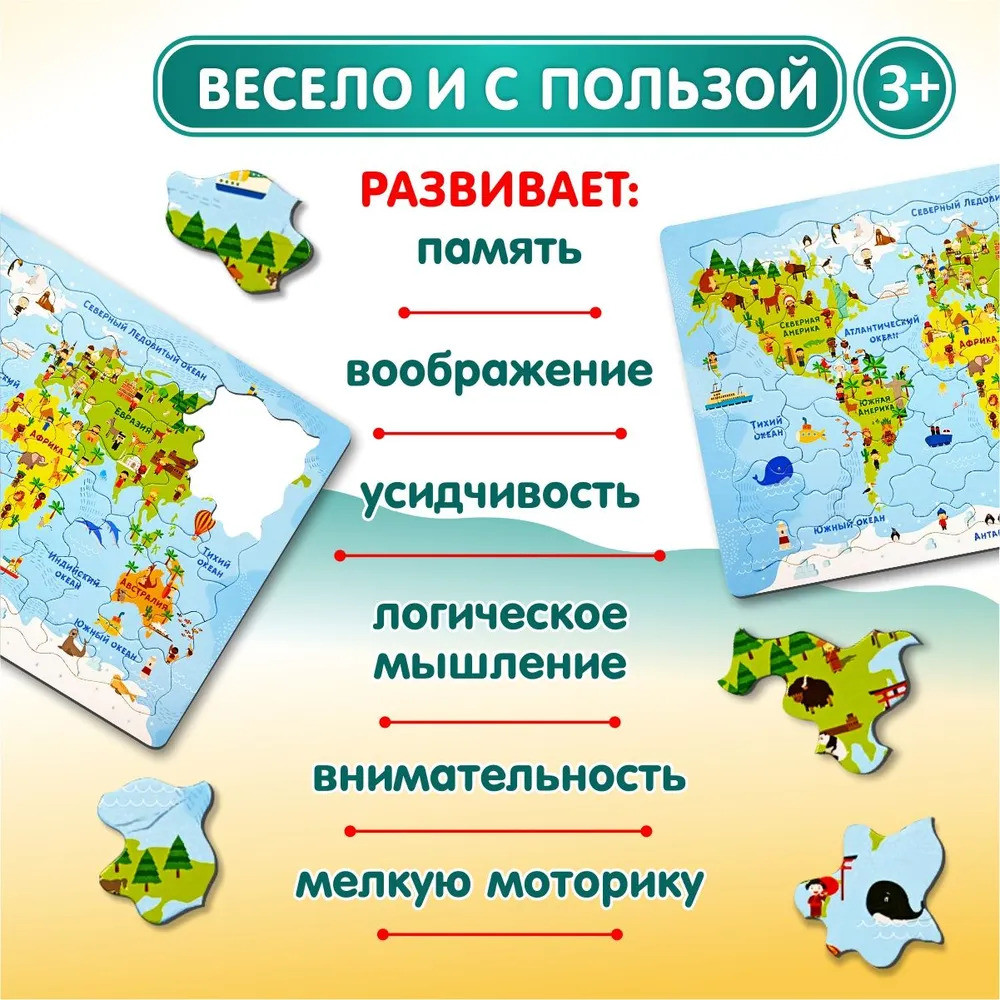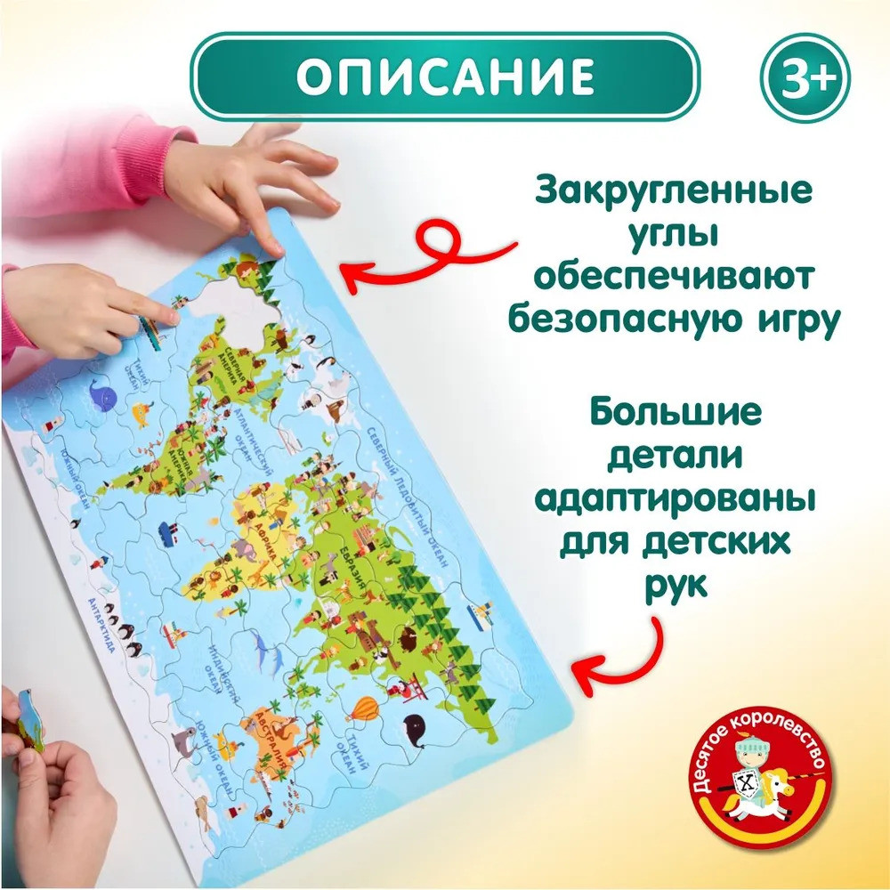 Десятое королевство Пазл для детей обучающий планшетный «Карта мира»-25%