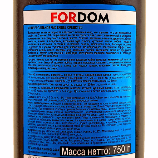 Универсальное чистящее средство Fordom Морской бриз, предназначен для чистки различных поверхностей в туалете и ванной комнате, на кухне. Подходит для мытья полов, рабочих поверхностей, стен, для чистки унитазов, ванн, раковин, кафеля, прочистки труб. Благодаря густой формуле, гель расходуется экономично, равномерно распределяется и не стекает с наклонных поверхностей. Не царапает поверхность и обладает приятным свежим запахом. Удаляет ряд типичных загрязнений, плесень, грибок, известковый налет, ржавчину. Растворяет мочевой камень и препятствует его образованию. Убивает микробы и устраняет неприятные запахи. Крышка флакона оснащена блокиратором для защиты от детей. Перед использованием обязательно ознакомиться с инструкцией на этикетке.