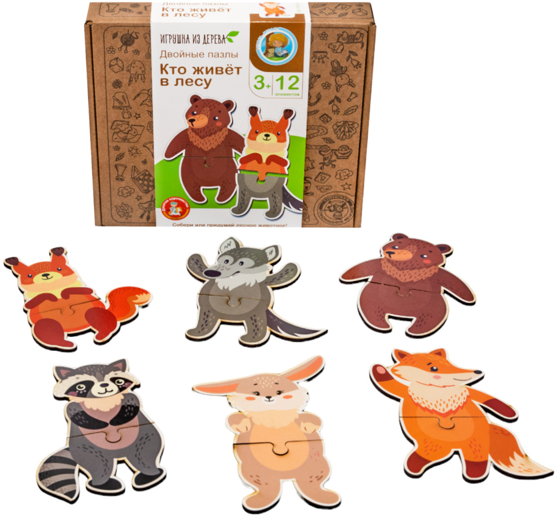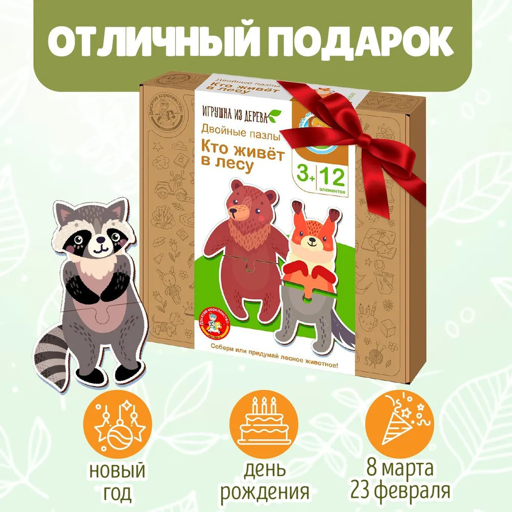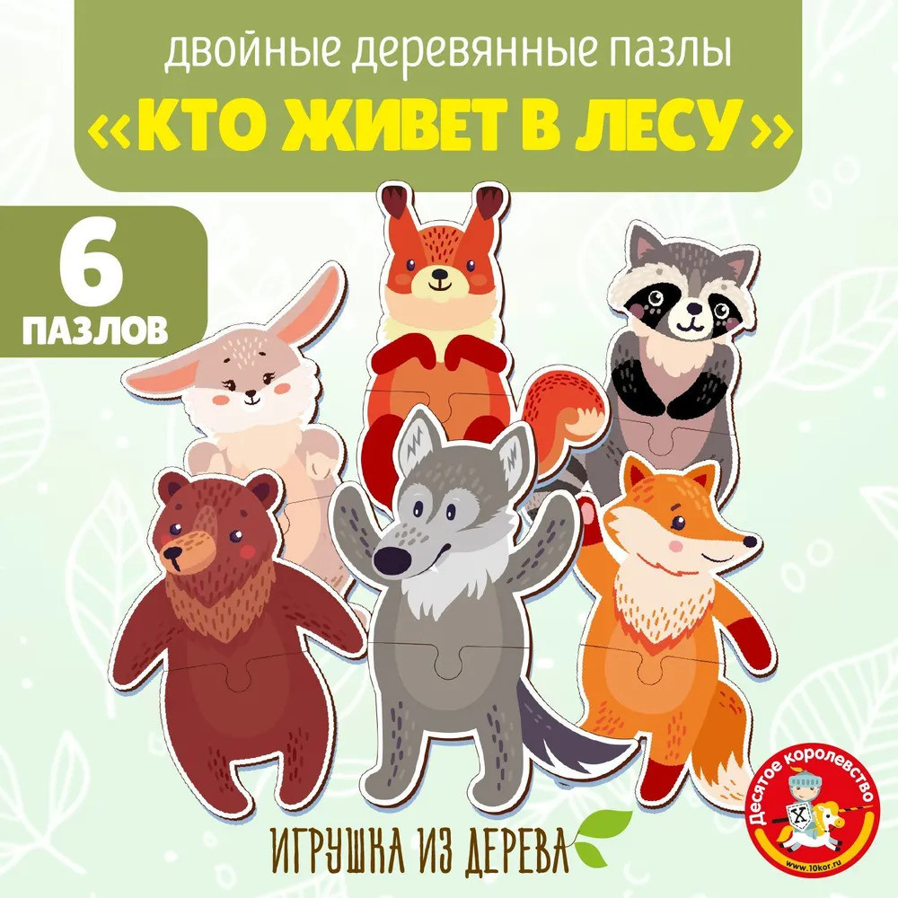 Десятое королевство Пазлы для детей двойные деревянные «Кто живет в лесу»-45%