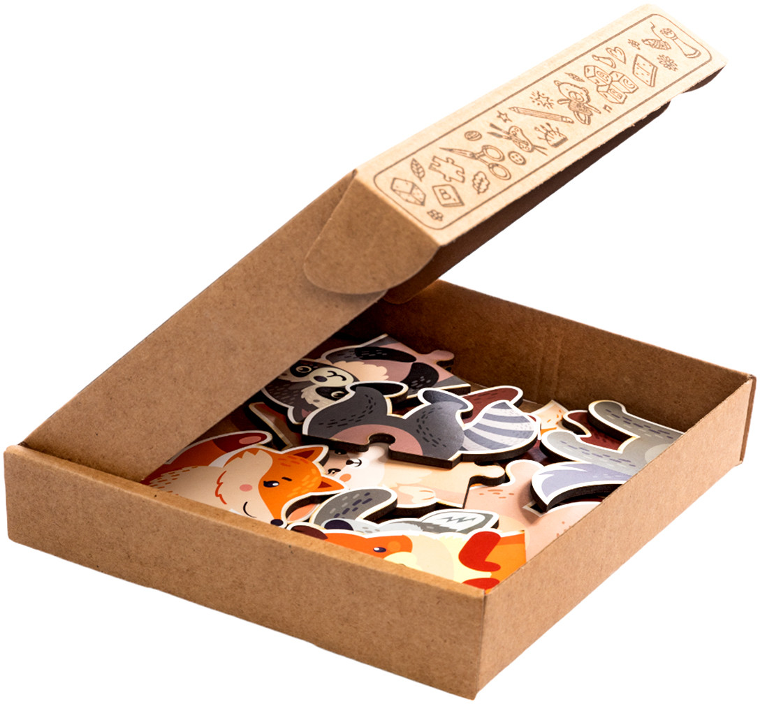 Серия: Учись, играя Двойные пазлы «Кто живет в лесу» — это классические пазлы, состоящие из 2 частей. Пазлы выполнены из высококачественного древесного материала. Соединяя части изображения, ребёнок составляет яркую картинку с изображением лесных жителей. Пазлы изготовлены из древесного материала. Толщина всех элементов около 3 мм. Края закруглены и тщательно обработаны. В процессе игры ребенок учится составлять целую картинку, подбирая подходящие элементы. При этом развивается терпение, усидчивость. Игра в пазлы помогает развивать у ребенка логическое мышление и память. Соединение деталей развивает мелкую моторику рук и образное мышление. |