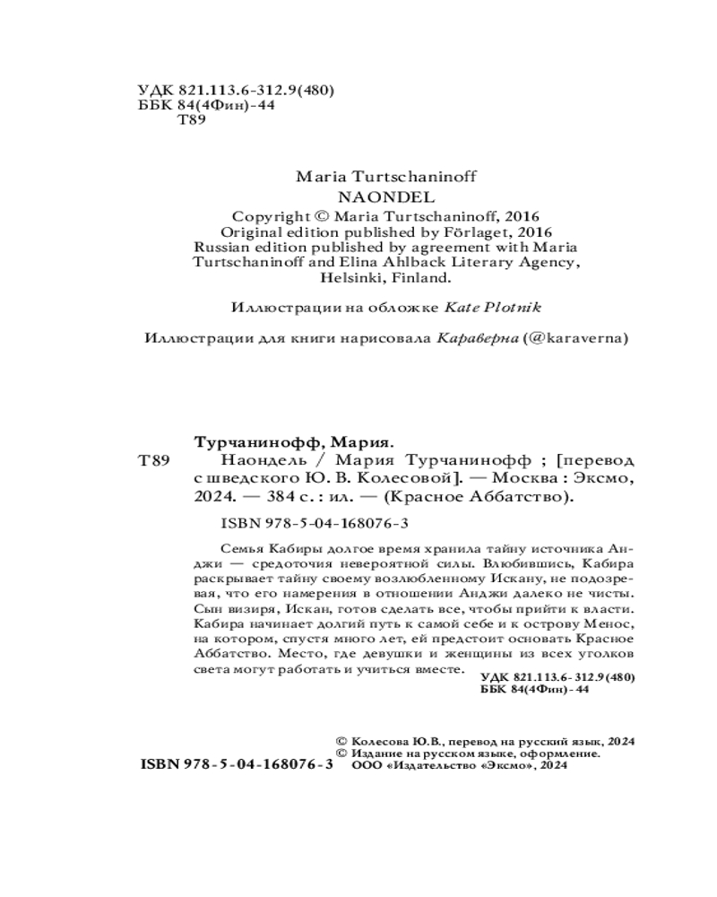 💳 Оплатить за товар можно при получении 🇰🇿 Есть бесплатная доставка по Казахстану 🎁 Копите бонусы с каждой покупки Серия: Красное Аббатство Кабира, Гараи, Эстеги, Орсеола... Что связывает этих прекрасных девушек? Искан, возлюбленный Кабиры. Он обманом выяснил у неё секреты источника Анджи, средоточия невероятной силы, и обманом же заманивал девушек в свой дворец. Но именно этим девушкам, таким хрупким и таким разным, предстоит отыскать лодку под названием «Наондель» и стать основательницами Красного Аббатства на далёком острове Менос... А перед этим пройти огромный путь, полный испытаний, бедствий, редкой радости и искренней взаимопомощи. |