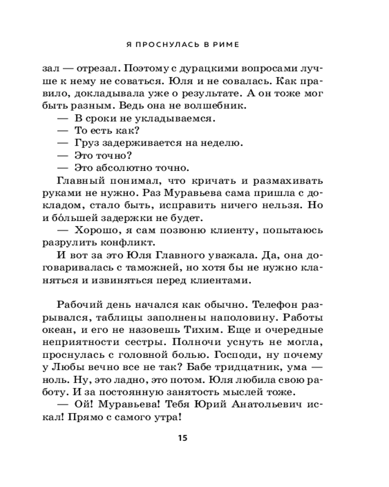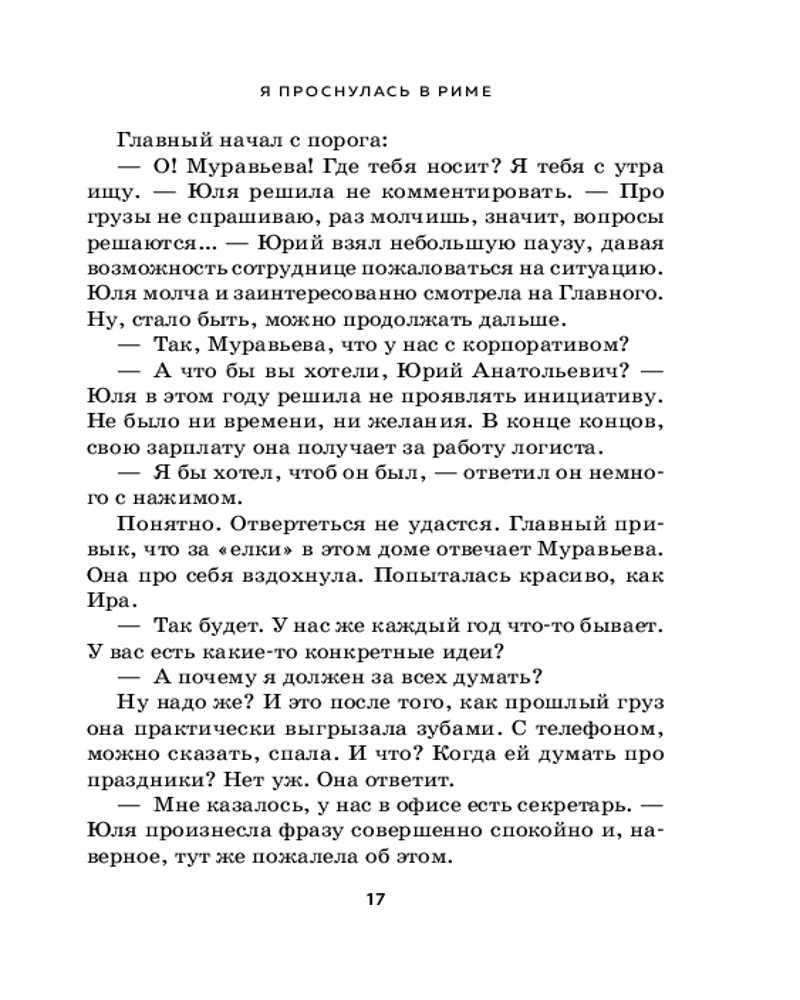 Серия: Близкие люди. Романы Елены Рониной (обложка) У Юли Муравьевой обычная жизнь — стабильная работа, родители-пенсионеры и сестра, которая вечно ругается с мужем. Все меняется одним днем, когда девушка позволяет себе немного помечтать... Юля с детства была влюблена в Италию, в Рим. Рабочий корпоратив с итальянским поваром не только меняет жизнь девушки. Но и открывает глаза ее окружению — жизнь может быть совершенно другой. Нужно только идти навстречу своим желаниям, своей мечте. |