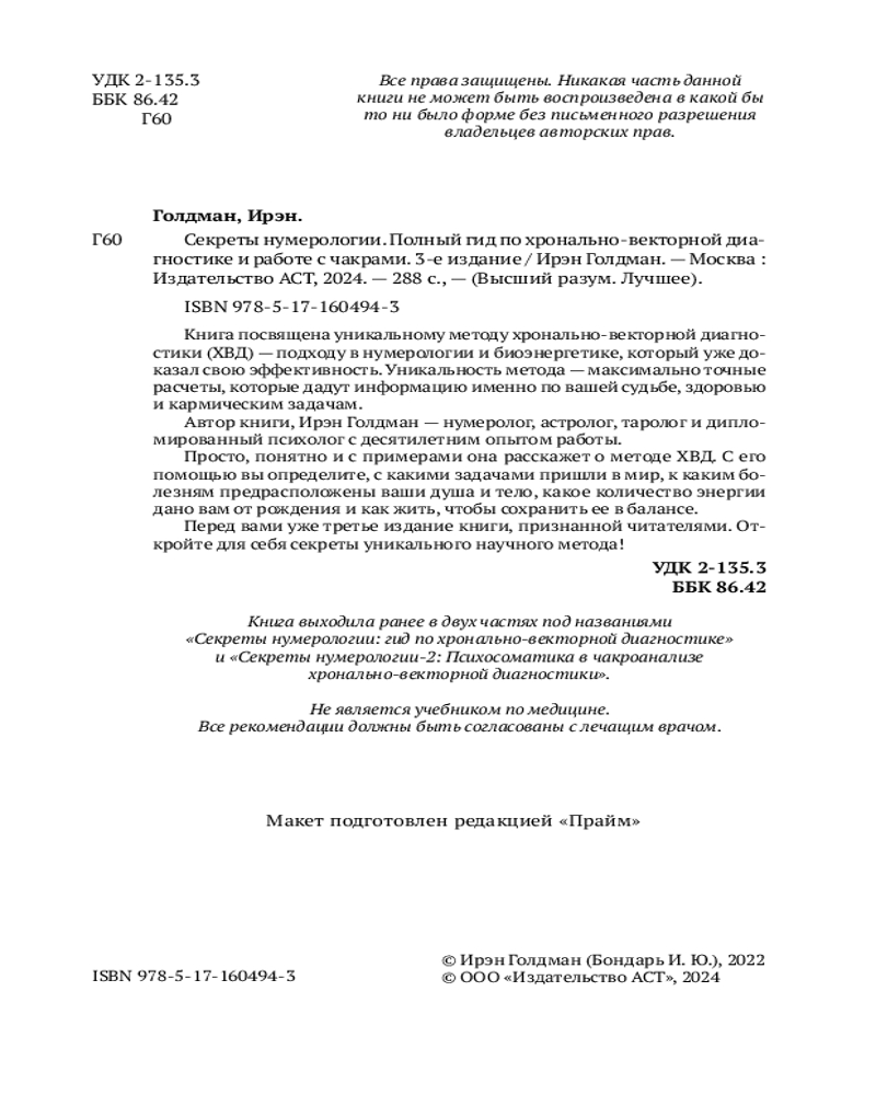💳 Оплатить за товар можно при получении 🇰🇿 Есть бесплатная доставка по Казахстану 🎁 Копите бонусы с каждой покупки Серия: Высший разум. Лучшее Книга посвящена уникальному методу хронально-векторной диагностики (ХВД) — подходу в нумерологии и биоэнергетике, который уже доказал свою эффективность. Уникальность метода — максимально точные расчеты, которые дадут информацию именно по вашей судьбе, здоровью и кармическим задачам. Он выявляет сильные и слабые стороны каждого конкретного человека, энергетическую емкость чакр. Автор книги, Ирэн Голдман — нумеролог, астролог, таролог и дипломированный психолог с десятилетним опытом работы. |