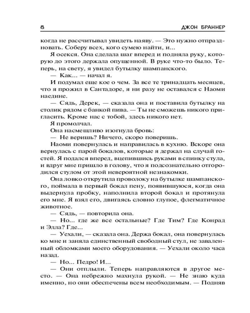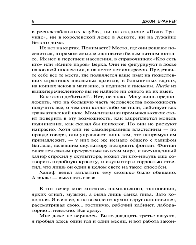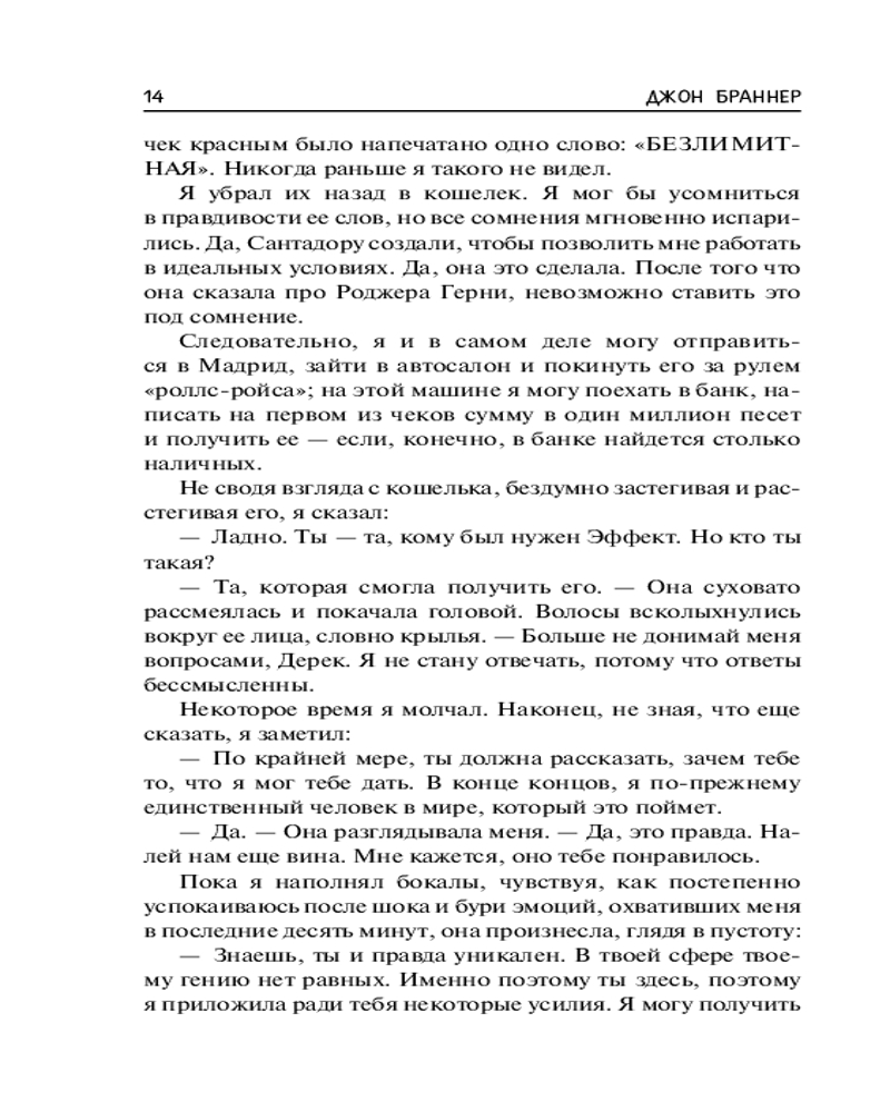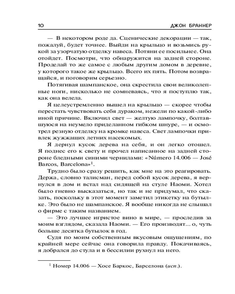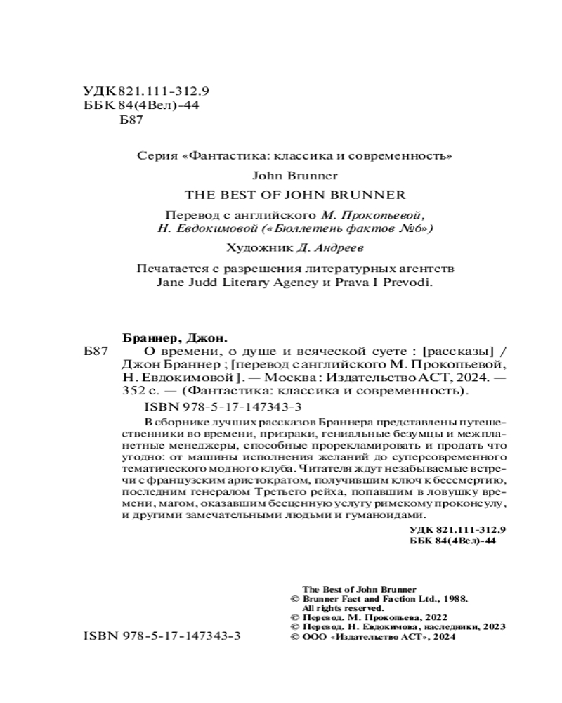 Серия: Фантастика: классика и современность В сборнике лучших рассказов Браннера представлены путешественники во времени, призраки, гениальные безумцы и межпланетные менеджеры, способные прорекламировать и продать что угодно: от машины исполнения желаний до суперсовременного тематического модного клуба. Читателя ждут незабываемые встречи с французским аристократом, получившим ключ к бессмертию, последним генералом Третьего Рейха, попавшим в ловушку времени, магом, оказавшим бесценную услугу римскому проконсулу, и другими замечательными людьми и гуманоидами. |