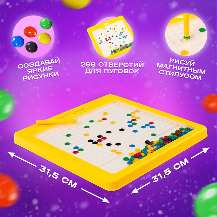 Эврики Планшет-мозаика магнитный для рисования «Пуговки»-25% +340