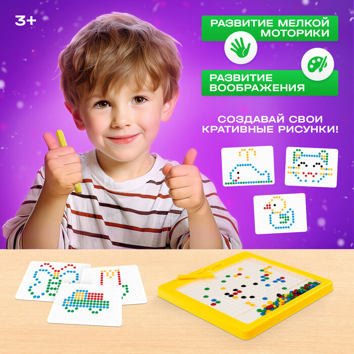 💳 Оплатить за товар можно при получении 🇰🇿 Есть бесплатная доставка по Казахстану 🎁 Копите бонусы с каждой покупки Серия: Магнитные планшеты Игра «Магнитное рисование» поможет обучить ребёнка письму в дошкольном возрасте. В комплект входит планшет с разноцветными пуговками и ручка-магнит. Перемещать элементы легко — они сами слушаются палочку с намагниченным наконечником и перелетают в круглые прозрачные ячейки. Малышу не нужно прикасаться к ним руками — чтобы пуговка следовала за стилусом проведите им по панели перемещая в одно из отверстий. |