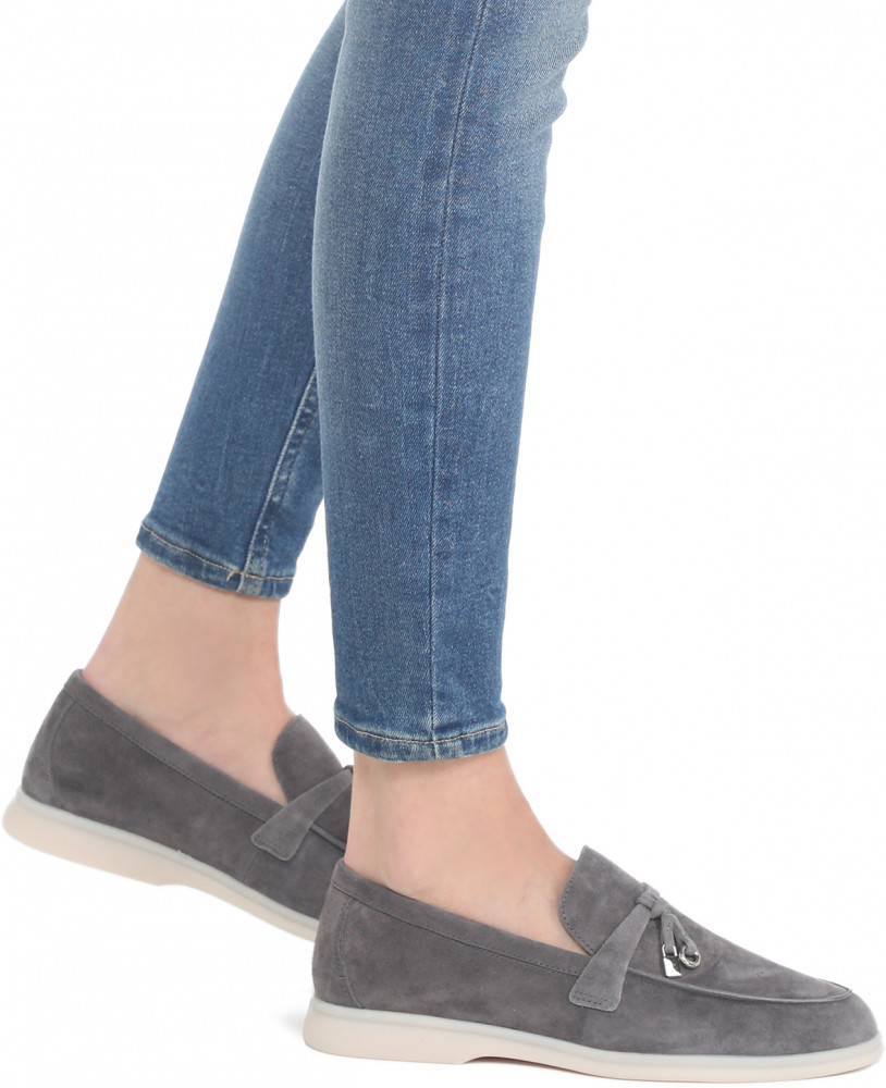 Лоферы из натуральной замши из кожи козленка — простые и одновременно удобные туфли в стиле Casual. Универсальный вариант на каждый день. Без подкладки. Стелька из натуральной кожи. Толщина подошвы — 1,3 см. Способ соединения подошвы — клеевой. Высота обуви — 6 см.