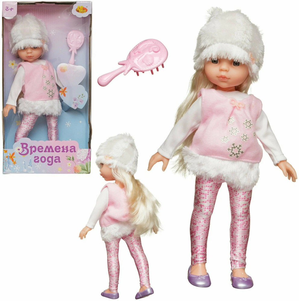 ABtoys КуклаВ данный момент этот товар отсутствует в продаже. Возможно, у нас найдется аналогичный или похожий товар здесь. Серия: Времена года Очаровательная кукла из серии «Времена года» от бренда ABtoys станет отличным подарком для любой девочки, которая будет заботиться, ухаживать, играть с ней. Игрушка напоминает миловидную модную девочку с выразительными серо-голубыми глазами, длинными светлыми волосами. Кукла одета в бело-розовые лосины, белую кофточку с длинными рукавами и нежно-розовый сарафан, украшенный снежинками, поверх нее, на голове куклы мягкая меховая белая шапочка, на ногах обуты туфельки. Девочкам понравится прижимать куклу к себе, разглядывать ее реалистичное личико, причесывать ее волосы, а также придумывать для нее роли в различных игровых сюжетах. |
