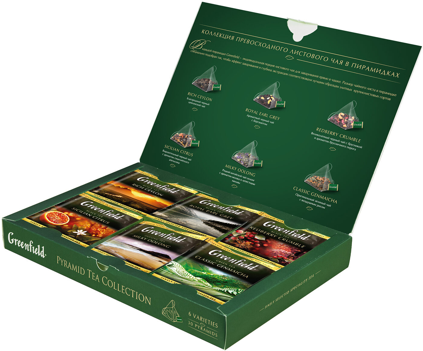 Greenfield Набор чая «Ассорти»В данный момент этот товар отсутствует в продаже. Возможно, у нас найдется аналогичный или похожий товар здесь. Коллекция листового чая Greenfield в пирамидках, 6 эксклюзивных вкусов — ярких и нежных, интригующих и насыщенных. Уникальная возможность оценить все разнообразие Greenfield вместе с семьей или за чтением книги. Прекрасный вариант подарка. Индивидуальная упаковка в термосаше из специальной фольги гарантирует исключительную свежесть чая и удобство использования. |