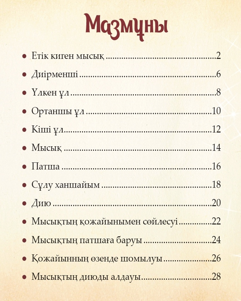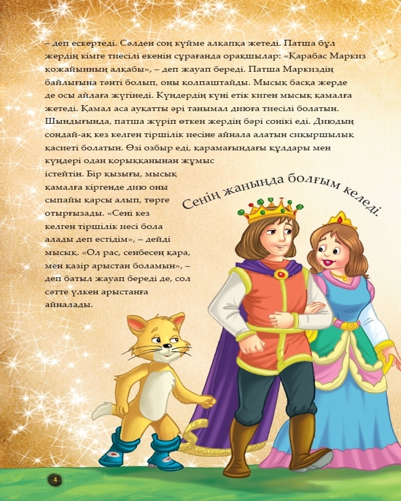 Серия: Шытырман ертегілер Етік киген мысық — балалар әдебиетінде айлакер кейіпкер ретінде танымал. Ертегіні XVII ғасырдың аяқ шенінде әйгілі Француз жазушысы Шарль Перо жазған. Шығарма кедей жігіттің әкесінен мысықты мұраға алуынан басталады. Сөйлейтін мысық өз қожайынына патшаның шарапатына ие болуға көмектеседі. |