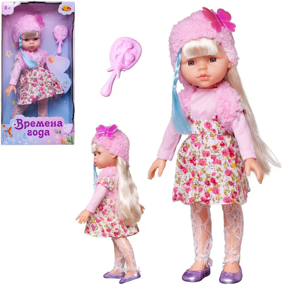 ABtoys КуклаВ данный момент этот товар отсутствует в продаже. Возможно, у нас найдется аналогичный или похожий товар здесь. Серия: Времена года Очаровательная кукла из серии «Времена года» от бренда ABtoys станет отличным подарком для любой девочки, которая будет заботиться, ухаживать, играть с ней. Игрушка напоминает миловидную модную девочку с выразительными серо-голубыми глазами, длинными светлыми волосами. Одна прядь волос куклы окрашена в яркий бирюзовый цвет, заплетена в косичку. Кукла одета в светлые ажурные колготки, розовую кофточку с длинными рукавами и яркий сарафан с цветочным принтом поверх нее, на голове куклы мягкая меховая розовая шапочка, сбоку которой прикреплена объемная аппликация в форме, на ногах розовые туфелькики. Девочкам понравится прижимать куклу к себе, разглядывать ее реалистичное личико, причесывать ее волосы, а также придумывать для нее роли в различных игровых сюжетах. |