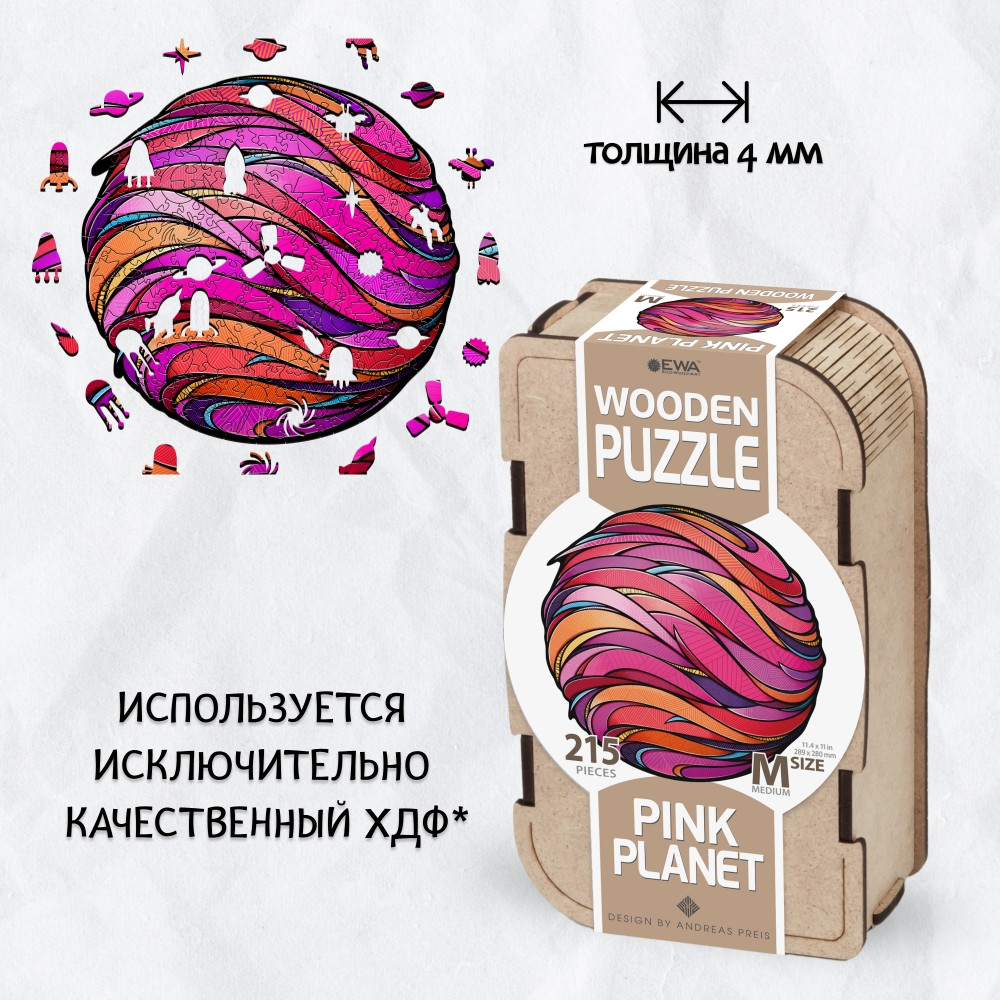 Деревянный пазл «Розовая планета» среднего размера 29×28 см — это захватывающий способ провести время с друзьями и семьей. Деревянные фигурные пазлы с изображением небесного тела станут отличным подарком для детей и для взрослого человека. Ведь каждый набор представляет собой картину, которая состоит из множества уникальных деталей — от астрономических объектов до космических пришельцев. Пазлы деревянные для детей и для взрослого помогут улучшить когнитивные навыки или расслабиться после трудового дня.