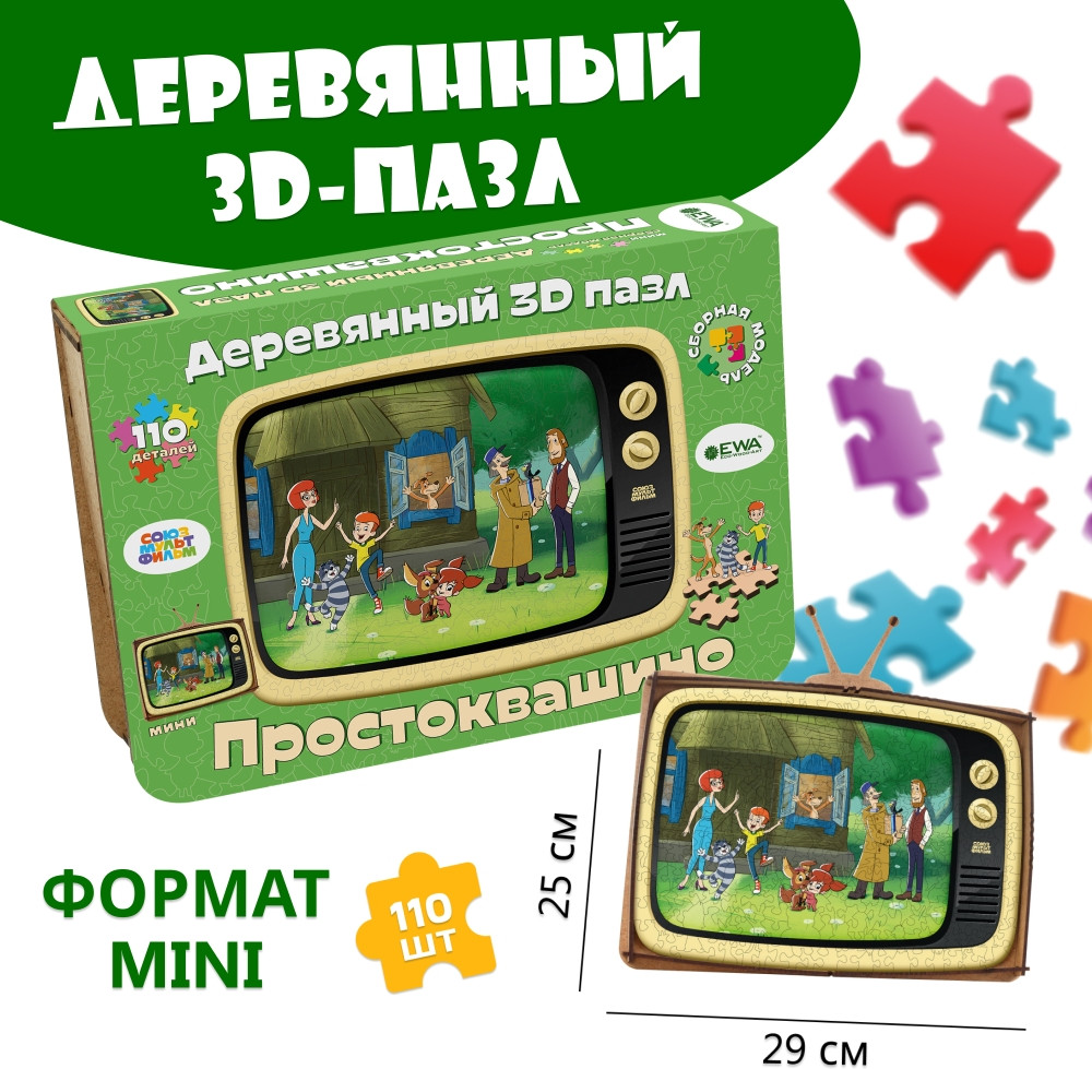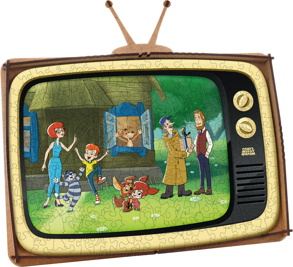 Деревянный пазл «Простоквашино» размера 29×25 см из коллекции Союзмультфильм — это захватывающий способ провести время с друзьями и семьей, вспоминая советские мультики. Деревянные фигурные пазлы с любимым советским мультфильмом станут отличным подарком для детей. Ведь каждый набор серии представляет собой картинку в «телевизоре», которая состоит из множества уникальных деталей — от геометрических фигур до животных и персонажей.