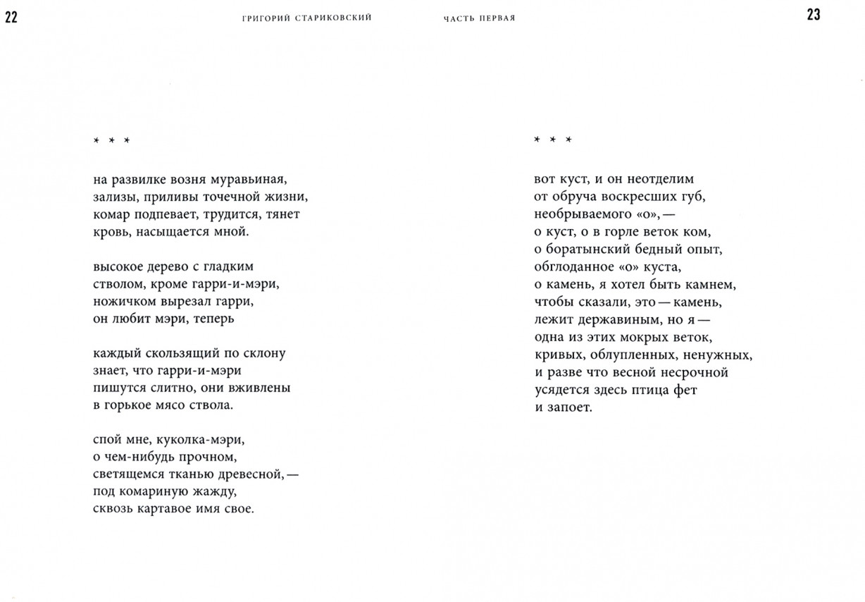 Серия: Н.В.П.: Новая поэзия Мир в стихах Григория Стариковского находится словно бы на грани исчезновения. Видимый (и мыслимый) «пейзаж после битвы» разорван на множество перекликающихся между собой фрагментов, в них осыпается штукатурка, летит вулканический италийский пепел, все расползается по швам, покрывается трещинами. Стихотворение строится как руина, где главное — зияние и пробел. И все же в разломах исторических плит сквозит, как ветер, память о другом пейзаже, о мире на грани рождения. Григорий Стариковский (р. 1971) — поэт, переводчик, эссеист. Родился и вырос в Москве. В США с 1992 года. Закончил Колумбийский университет (кафедра классической филологии), преподает латынь в школе. Переводил Пиндара, Проперция, Вергилия, Авла Персия, «Одиссею» (песни 9–12), Софокла («Царь Эдип»), а также стихи Уолта Уитмена, Уильяма Карлоса Уильямса, Луиса Макниса, Дерека Уолкотта, Шеймуса Хини и др. Сборники стихов «Левиты и певцы» (2013) и «Автономный источник» (2017). Живет в пригороде Нью-Йорка. |