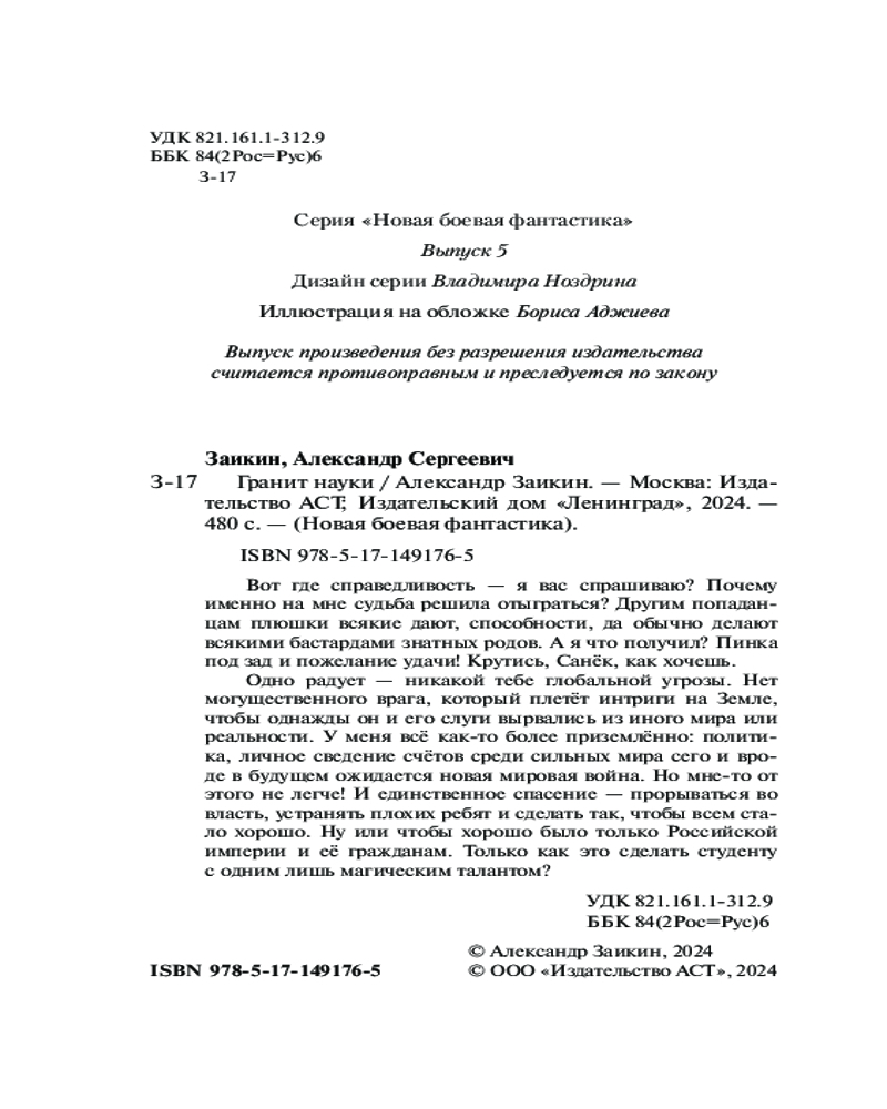 Серия: Новая боевая фантастика Вот где справедливость — я вас спрашиваю? Почемуименно на мне судьба решила отыграться? Другим попаданцам плюшки всякие дают, способности, да обычно делают всякими бастардами знатных родов. А я что получил? Пинка под зад и пожелание удачи! Крутись, Санёк, как хочешь. Одно радует — никакой тебе глобальной угрозы. Нет могущественного врага, который плетёт интриги на Земле, чтобы однажды он и его слуги вырвались из иного мира или реальности. У меня всё как-то более приземлённо: политика, личное сведение счётов среди сильных мира сего и вроде в будущем ожидается новая мировая война. Но мне-то от этого не легче! И единственное спасение — прорываться во власть, устранять плохих ребят и сделать так, чтобы всем стало хорошо. Ну или чтобы хорошо было только Российской империи и её гражданам. Только как это сделать студенту с одним лишь магическим талантом? |