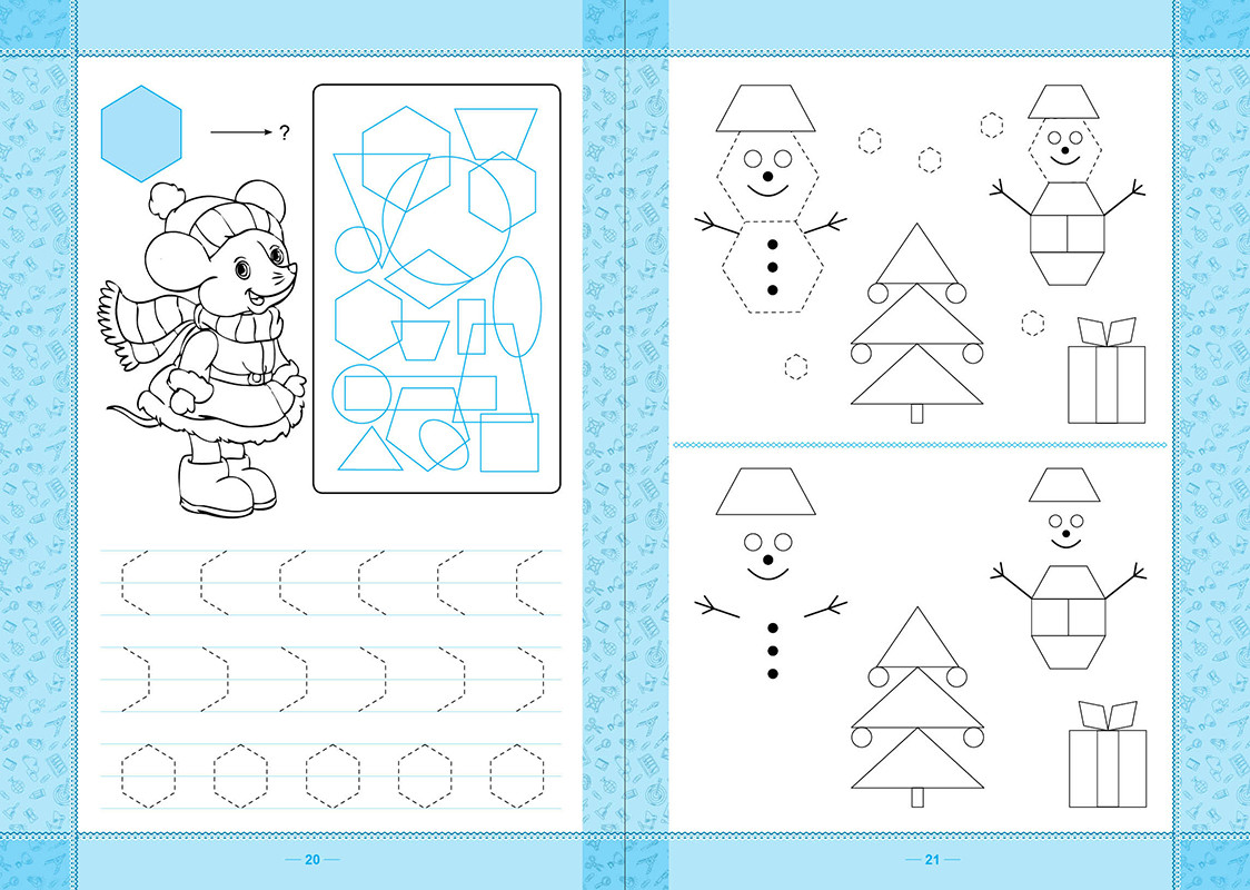 Данное пособие для дошкольников поможет в увлекательной форме познакомить ребёнка с геометрическими фигурами. Нарисованные схемы для обводки позволят легче запомнить их внешний вид, а дополнительные поля для самостоятельного начертания геометрических фигур дадут представление о конструировании. Рекомендуется для использования на занятиях в дошкольных учреждениях и при индивидуальной подготовке к школе. |