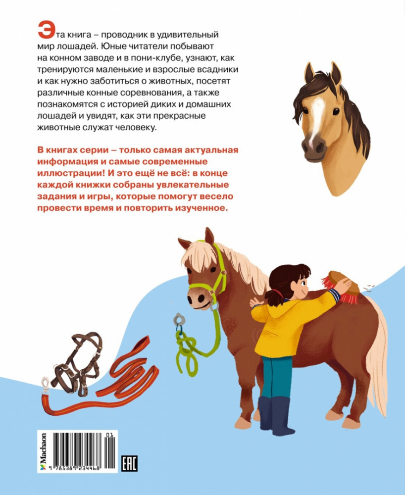 Серия: Твоя первая энциклопедия (нов.) Эта книга — проводник в удивительный мир лошадей. Юные читатели побывают на конном заводе и в пони-клубе, узнают, как тренируются маленькие и взрослые всадники и как нужно заботиться о животных, посетят различные конные соревнования, а также познакомятся с историей диких и домашних лошадей и увидят, как эти прекрасные животные служат человеку. В книгах серии — только самая актуальная информация и самые современные иллюстрации! И это ещё не всё: в конце каждой книжки собраны увлекательные задания и игры, которые помогут весело провести время и повторить изученное. |