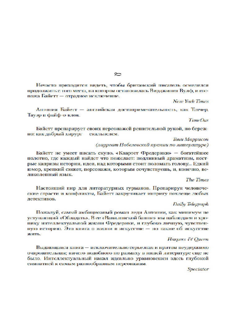 Серия: Большой роман «Вавилонская башня» — это третий роман «Квартета Фредерики», считающегося, пожалуй, главным произведением кавалерственной дамы ордена Британской империи Антонии Сьюзен Байетт. Тетралогия писалась в течение четверти века, и сюжет ее также имеет четвертьвековой охват, причем первые два романа («Дама в саду», «Живая вещь») вышли еще до удостоенного Букеровской премии международного бестселлера «Обладать», а третий и четвертый — после. |