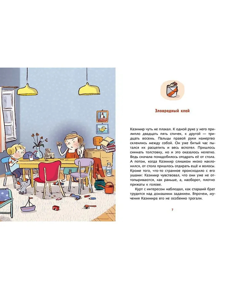 💳 Оплатить за товар можно при получении 🇰🇿 Есть бесплатная доставка по Казахстану 🎁 Копите бонусы с каждой покупки Серия: Братья-изобретатели Казимир и его младший брат Курт очень любят изобретать разные нужные и полезные вещи. Они уже придумали сверхскоростной беспедальный велосипед, ванну для купания без воды и приспособление под названием «третья рука». А с помощью своей новейшей разработки — супер-пупер-клея, сваренного из карамелек, жвачки и улиточной слизи — им даже удалось поймать грабителя. |