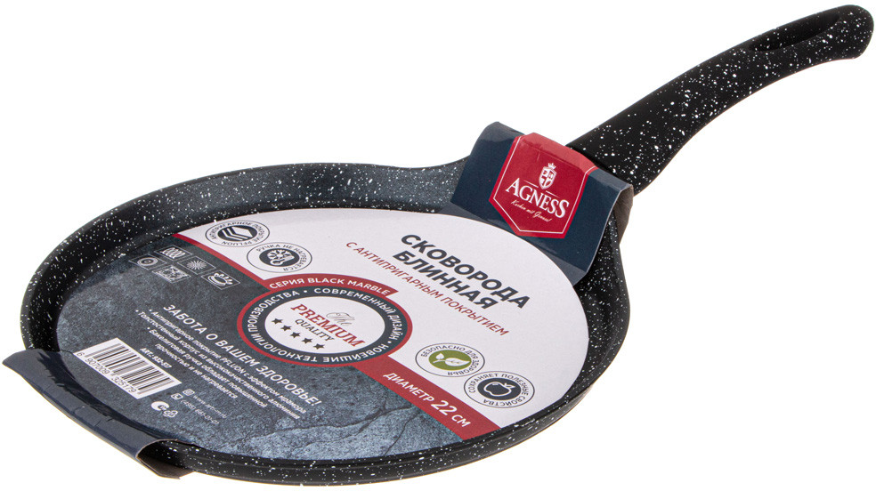 Agness Сковорода блиннаяВ данный момент этот товар отсутствует в продаже. Возможно, у нас найдется аналогичный или похожий товар здесь. Серия: Black Marble Сковорода Agness с антипригарным покрытием «Black Marble» — это идеальный выбор для тех, кто ценит удобство и функциональность в посуде. Одним из главных достоинств этой сковороды является ее антипригарное покрытие, которое позволяет готовить без использования большого количества масла, а также обеспечивает равномерное распределение тепла. Благодаря этому, продукты готовятся быстрее и сохраняют свои полезные свойства.Быстрое нагревание сокращает время приготовления и сохраняет вкус и аромат продуктов. Многослойная структура покрытия обеспечивает превосходные эксплуатационные качества и увеличивает срок службы, не содержит PFOA.Эргономичная ручка из бакелита с мягким покрытием Soft touch не нагревается и не плавится, обеспечивает безопасное использование сковородки в процессе приготовления пищи. Посуда Agness — это современный дизайн и новейшие технологии производства. |