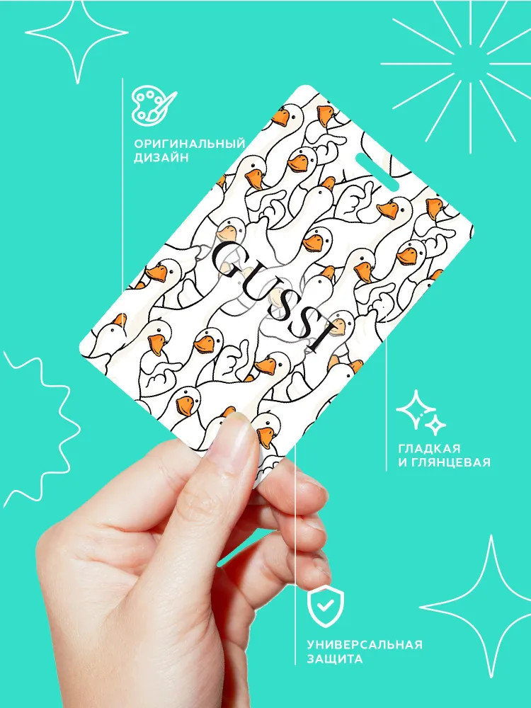 Серия: Гусь-обнимусь Оригинальный чехол для карт, в который можно поместить пропуск, бэйдж, проездной или электронный ключ. Выполнен из ПВХ, оснащён прозрачным окном. Чехол легко поместится в кармане одежды. Кроме того, к чехлу можно прикрепить ретрактор для ношения на поясе. Разнообразные принты чехлов дарят широту выбора для самовыражения. |