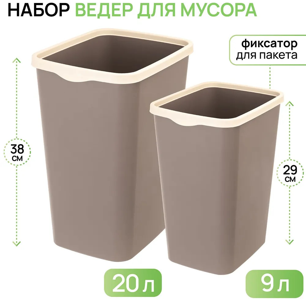 Набор из двух вёдер для мусора с фиксаторами El Casa «Тандем» поможет поддерживать чистоту в вашем доме, офисе или на улице. Мусорные вёдра выполнены из полипропилена в расцветке серый металлик с чёрными фиксаторами. Этот вид пластика считается наиболее безопасным, так как не содержит бисфенол А и не выделяет вредных веществ. Мусорное ведро прямоугольной формы можно разместить в ванной комнате, туалете или на кухне. Удобный держатель в виде ободка помогает зафиксировать мусорный пакет на ведре и не даёт ему сползать. Поставьте урну из пластика на пол возле раковины, стола или в хозяйственный шкаф. Высокое пластиковое ведёрко можно использовать как офисное — под ненужные бумаги. Большая ёмкость обеспечивает достаточное пространство для хранения мусора любого вида. Можно приспособить на даче как уличную мусорку. Пластиковые мусорные вёдра выполнены в универсальном дизайне и хорошо сочетаются друг с другом. Можно использовать несколько баков из пластика серии «Тандем» для организации раздельной системы сбора мусора. Корзины с фиксаторами станут незаменимыми помощниками для поддержания чистоты как в доме, так и на улице и помогут организовать порядок в любом пространстве.