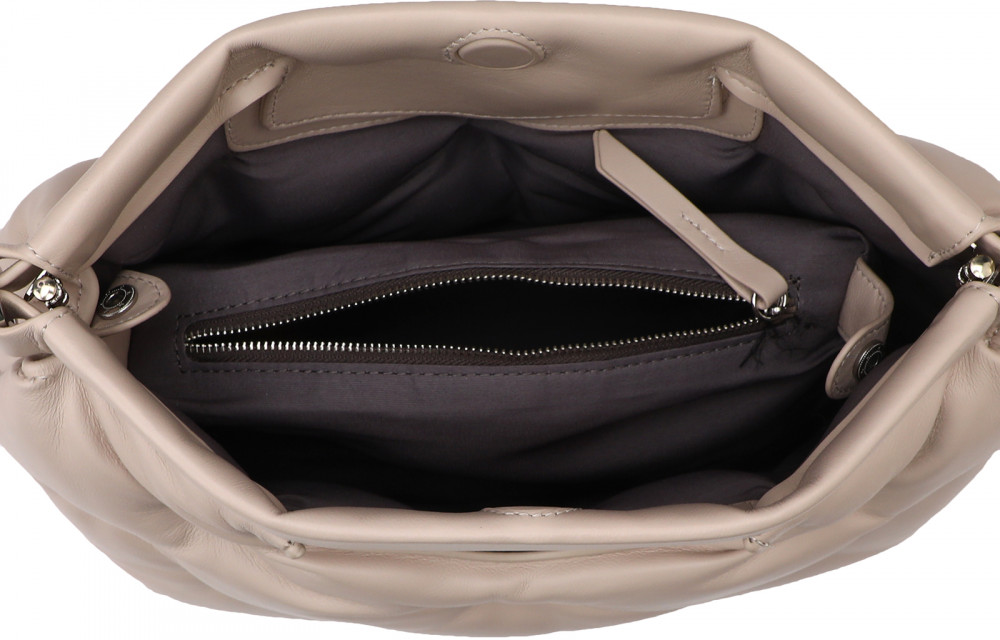 Сумка симпатичная, достаточно вместительная, кожа мягкая. На этом её достоинства и заканчиваются.Недостатки: нет отделения для телефона, внутри небольшой кармашек, который крепится кнопками к сумке. Что туда можно вкладывать, непонятно (маленький).Клапаны под замком открытые. Вся внутренность сумки видна, рука пролезет. Некрасиво. Да и для желающих пошарить в сумке доступ свободен.