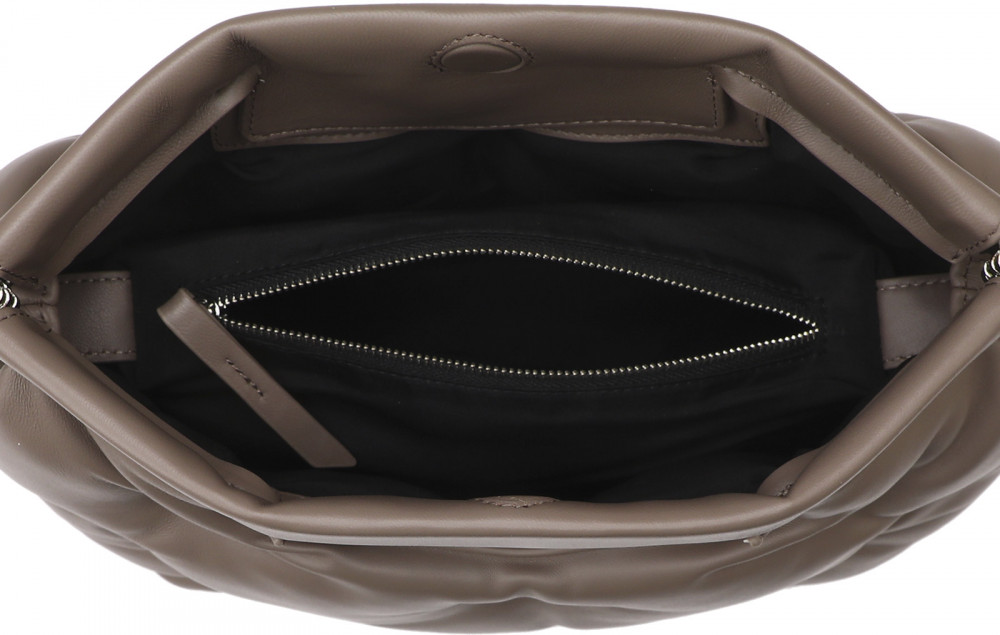 Сумка симпатичная, достаточно вместительная, кожа мягкая. На этом её достоинства и заканчиваются.Недостатки: нет отделения для телефона, внутри небольшой кармашек, который крепится кнопками к сумке. Что туда можно вкладывать, непонятно (маленький).Клапаны под замком открытые. Вся внутренность сумки видна, рука пролезет. Некрасиво. Да и для желающих пошарить в сумке доступ свободен.