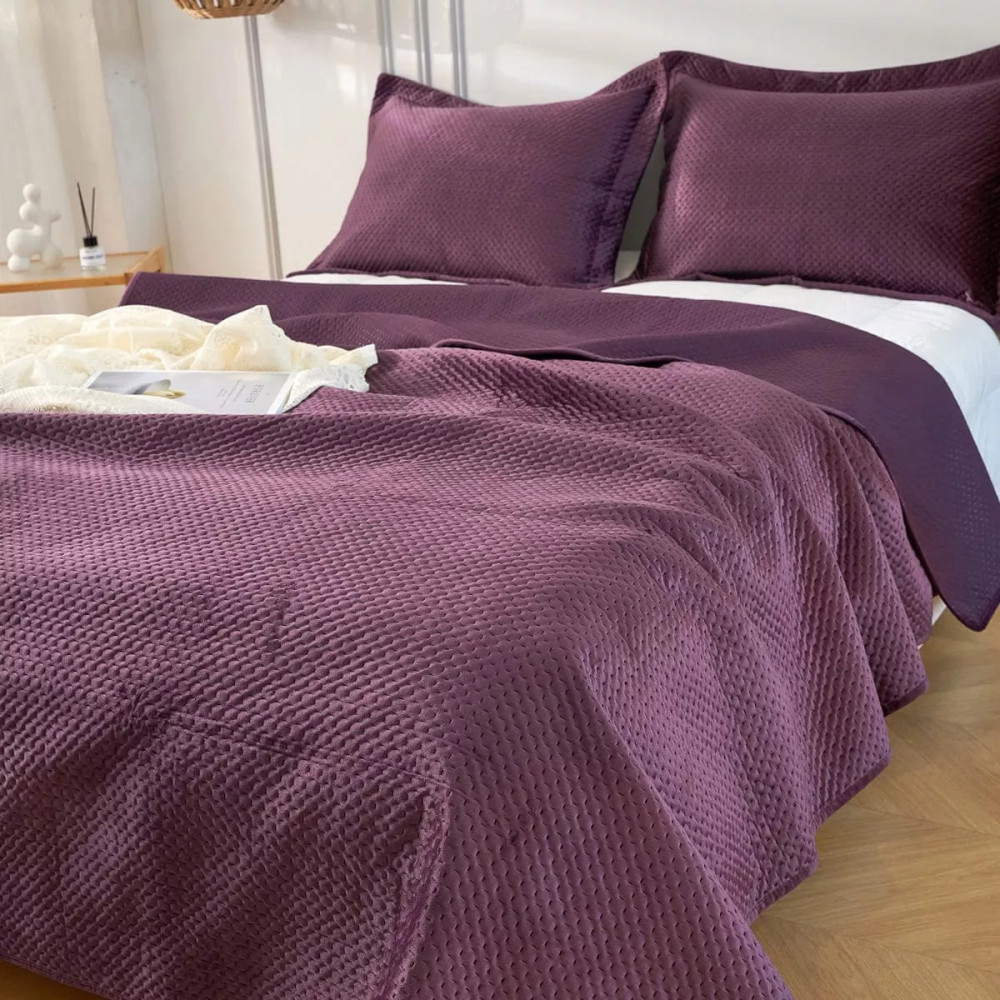 Изготовленное из высококачественного полиэстера покрывало имеет очень мягкую и приятную велюровую текстуру, благодаря чему будет приятно коже. Плед на кровать с геометрической стежкой — вечная классика, которая будет уместна в любой спальне или комнате подростка. Он будет красиво смотреться на кровати, на диване, на угловом диване, создавая уют и комфорт. Кроме того, плед с наволочкой прочный и износостойкий, что делает его отличным выбором для повседневного использования.