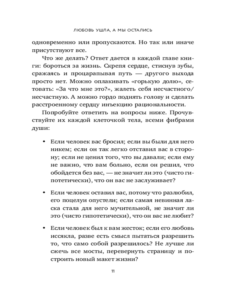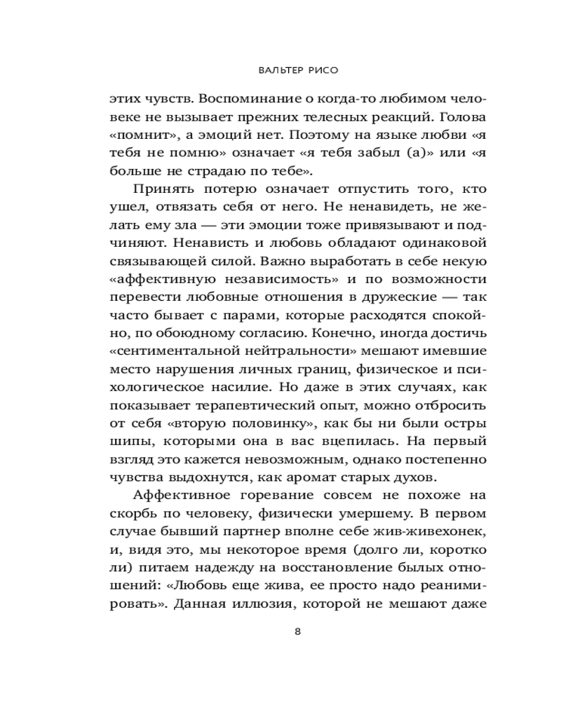 Любовь ушла, а мы остались. Как пережить расставание и открыть новые горизонтыВ данный момент этот товар отсутствует в продаже. Возможно, у нас найдется аналогичный или похожий товар здесь. Серия: Психология счастливой жизни. Книги, которые окрыляют Вальтер Рисо — доктор психологии из Колумбии, автор самых солнечных и жизнелюбивых бестселлеров о самопомощи. Во всем мире его знают и ценят как специалиста по когнитивной терапии и биоэтике, книги Вальтера Рисо выходят огромными тиражами на 20 языках. Любую проблему — будь то зависимость, неразделенная любовь, низкая самооценка или тревожность — Рисо предлагает решать не через борьбу, слезы и мучительные детские воспоминания. Его подход предполагает здравый оптимизм, оправданные усилия и радость от них. Перелистывая последнюю страницу любой его книги, читатель уже не верит, а знает — все будет хорошо. |
