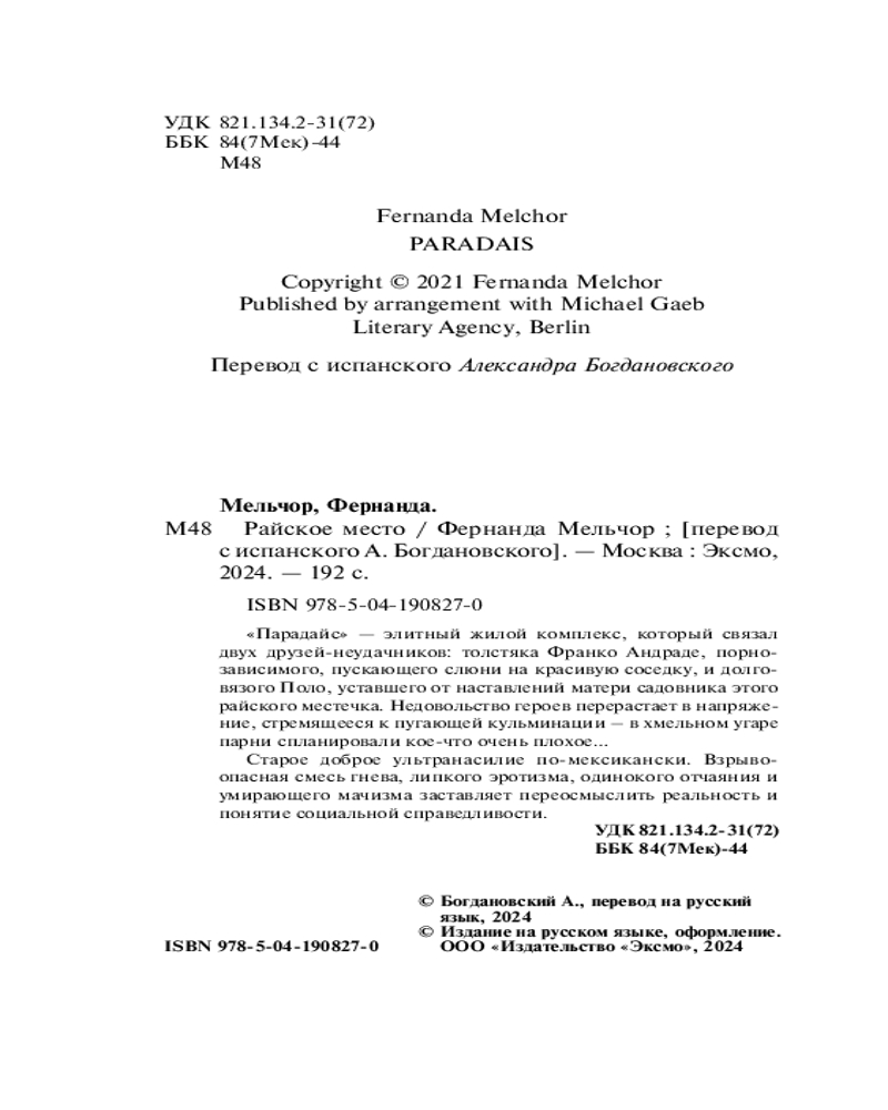Серия: Loft. Сиеста «Парадайс» — элитный жилой комплекс, который связал двух друзей-неудачников, толстяка Франко Андраде, порнозависимого, пускающего слюни на красивую соседку, и долговязого Поло, уставшего от наставлений матери садовника этого райского местечка. Недовольство героев перерастает в напряжение, стремящееся к пугающей кульминации — в хмельном угаре парни спланировали кое-что очень плохое... |