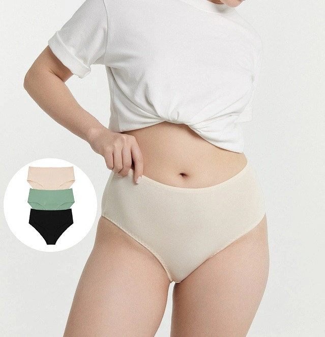 Неплохие макси трусы. До этого брала цвет обжаренный миндаль, решила повторить в другом цвете. У обоих комплектов указан объем 114 см. Но эти оказались больше. Производство Китай.