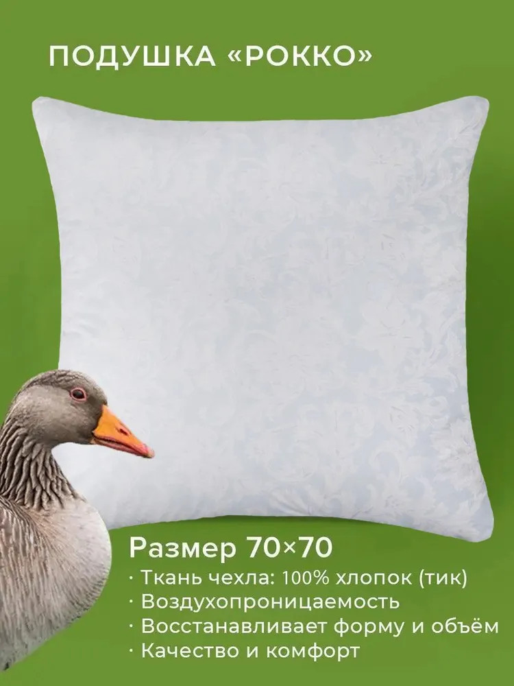 Удобная подушка «Рокко» из натурального перопухового наполнителя в 100% хлопковом тике — это экологичность, безопасность и комфорт по доступной цене. Качество, долговечность, демократичная цена и привлекательный дизайн — основные составляющие популярности этой коллекции у покупателей и являются лучшим выбором практичных и экономных хозяек.