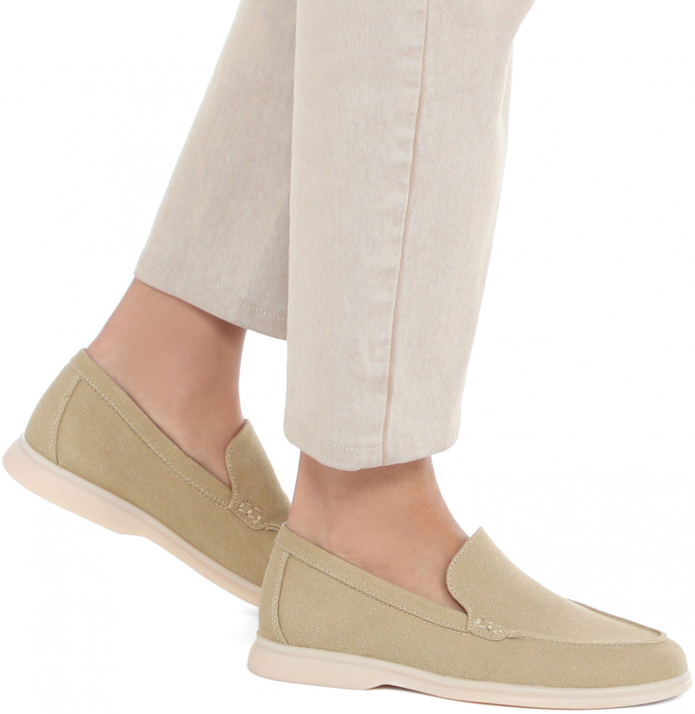 Лоферы из текстиля — простые и одновременно удобные туфли в стиле Casual. Универсальный вариант на каждый день. Толщина подошвы — 1,3 см. Способ соединения подошвы — клеевой. Высота обуви — 6 см.