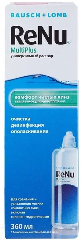 Универсальный раствор ReNu MultiPlus обеспечивает постоянное увлажнение поверхности линзы и продолжительный комфорт. Очищает, разрыхляет и удаляет образовавшуюся в процессе ношения мягких контактных линз пленку, другие отложения или загрязнения. Уничтожает патогенные микроорганизмы, находящиеся на поверхности линзы. Используется для промывания, хранения и увлажнения линз перед надеванием.