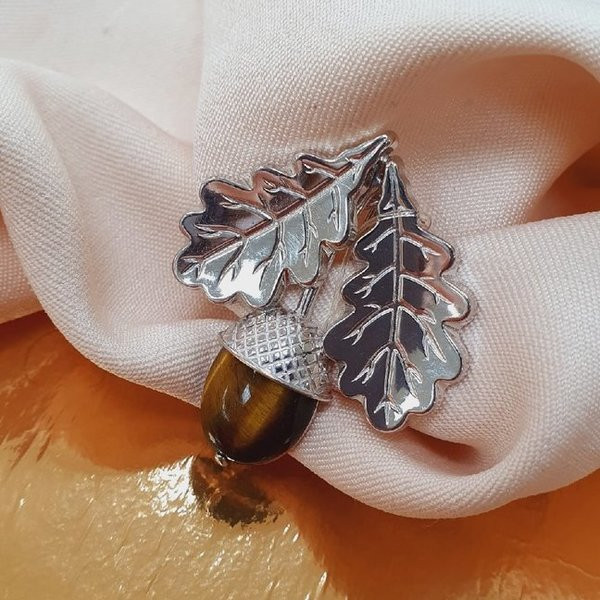 Костромской ювелирный завод Брошь из серебра с тигровым глазом
