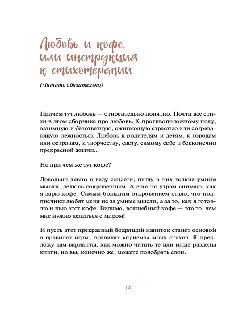 Серия: Искры вдохновения. Книги, которые исполняют желания Это первый в мире курс «стихокофетерапии». Стихи психолога Татьяны Мужицкой приглашают вас на чудесное свидание с самим собой. Обволакивая нежностью, раззадоривая страстью, вызывая то смех, то слезы, эти строки помогут отыскать кнопку самоисцеления в душе. Выбирайте для свидания ресурсное место. «Принимайте» стихи за чашкой кофе солнечным утром или дождливым вечером, с друзьями на кухне или под пледом в одиночестве. |
