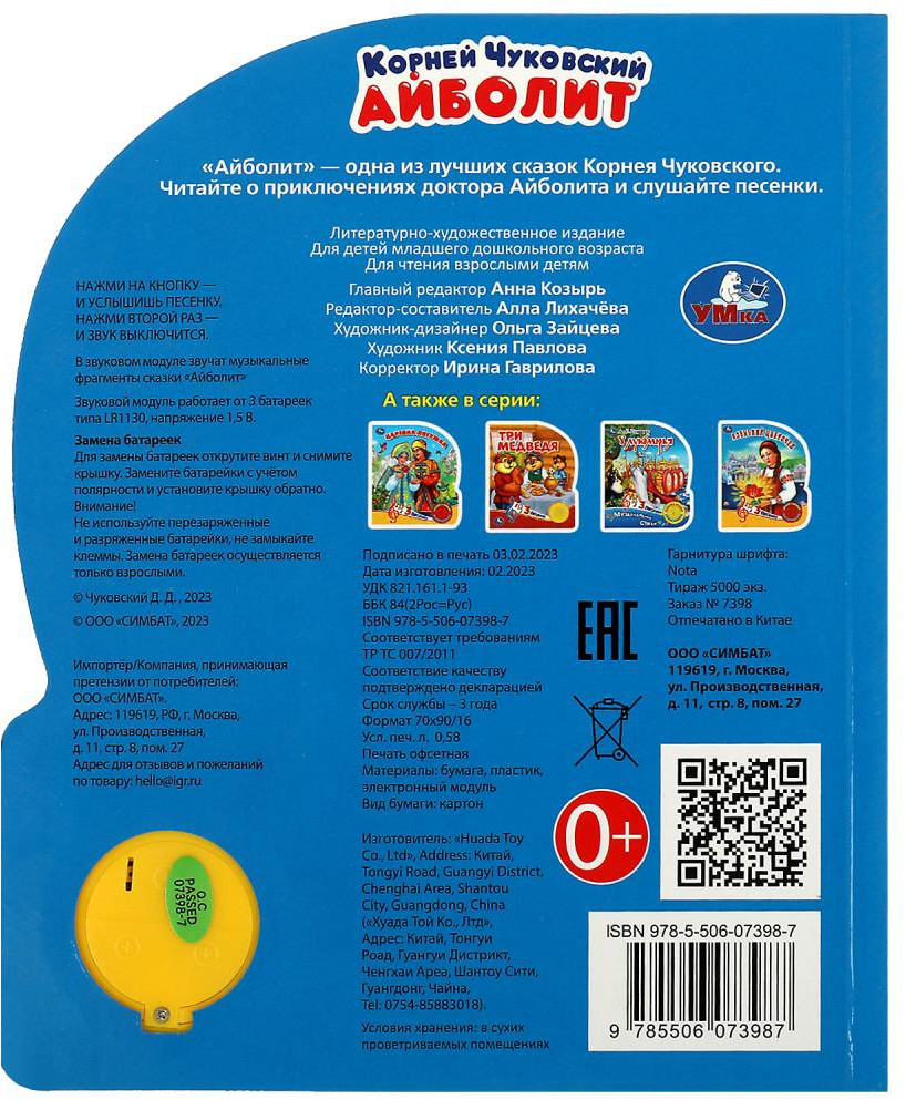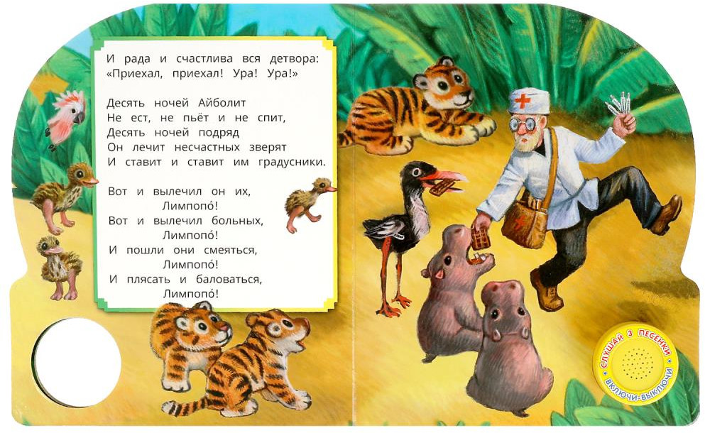 Серия: Музыкальная сказка Музыкальная книга «К. Чуковский. Айболит» ТМ «УМка» станет прекрасным подарком для малыша. Ребёнок с удовольствием будет листать плотные страницы, рассматривать красочные картинки, вместе с родителями читать известную стихотворную сказку Корнея Чуковского и, конечно, нажимать на кнопку и слушать мелодичные песенки. Малыш легко освоит включение звука: по нажатию на кнопку песенка включится, при втором нажатии выключится, при третьем - заиграет следующая композиция. Благодаря компактному размеру книгу удобно взять с собой в дорогу. |