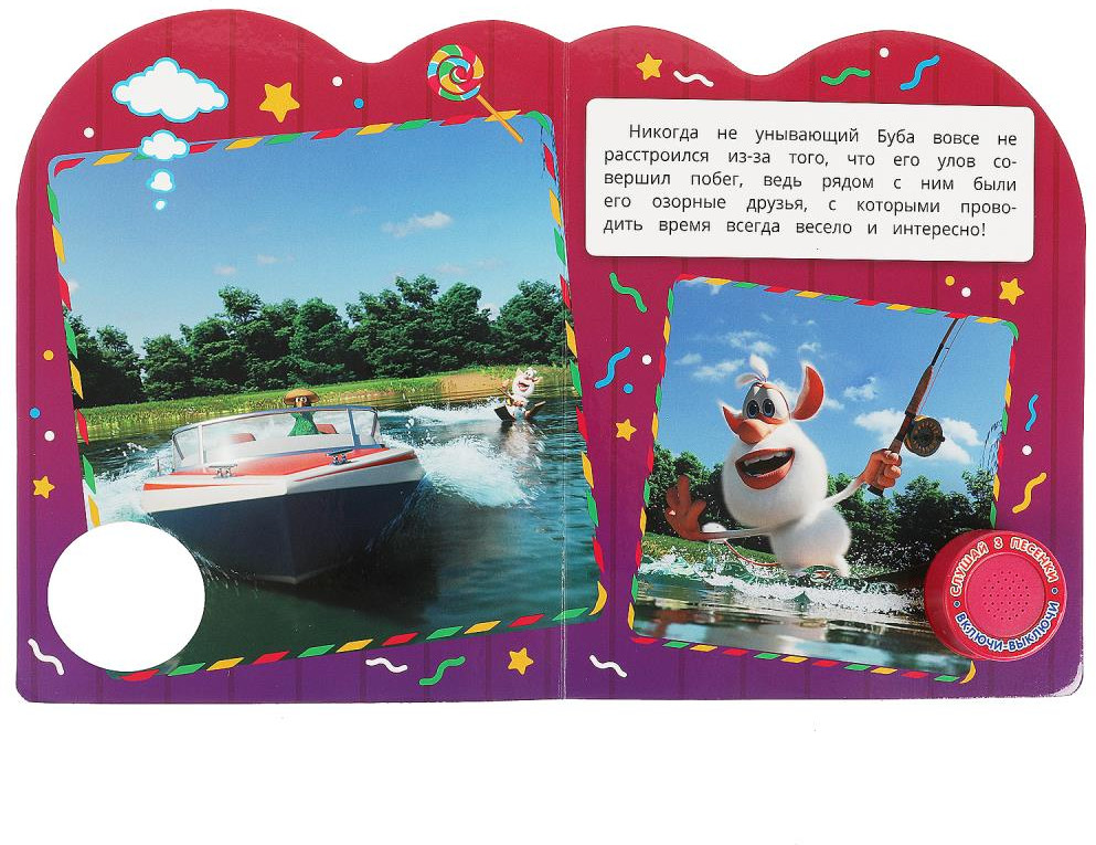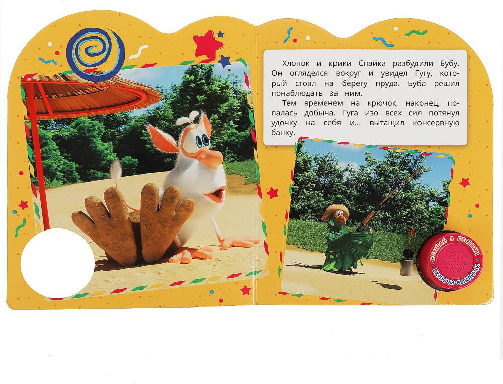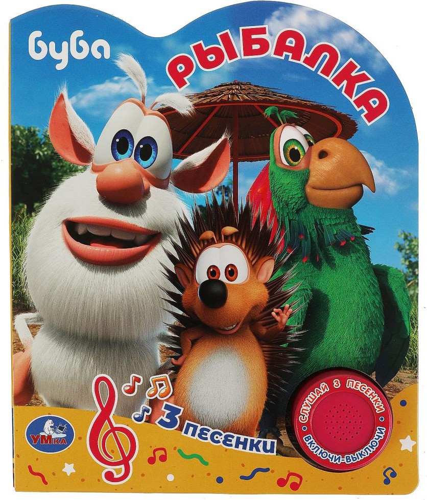 Музыкальная книга «Буба. Рыбалка» ТМ «УМка» станет прекрасным подарком для малыша. Ребёнок с удовольствием будет листать плотные страницы, рассматривать яркие картинки, вместе с родителями читать интересную историю по мотивам мультфильма и, конечно, нажимать на кнопку и слушать весёлые песенки. Малыш легко освоит включение звука: по нажатию на кнопку песенка включится, при втором нажатии выключится, при третьем — заиграет следующая композиция. Благодаря компактному размеру книгу удобно взять с собой в дорогу.