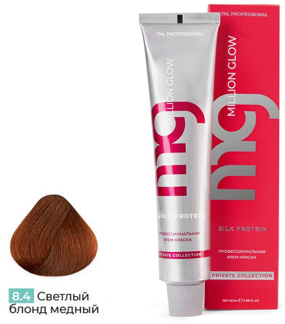 TNL Professional Крем-краска для волос с протеинами шёлка, оттенок 8.4 Светлый блонд медный