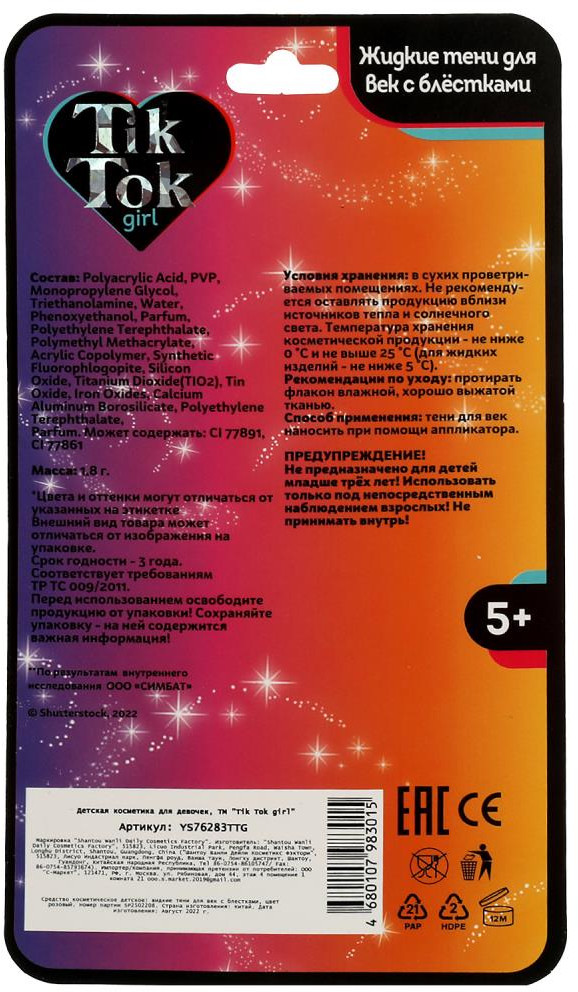 Tik Tok Girl Тени жидкие для векВ данный момент этот товар отсутствует в продаже. Возможно, у нас найдется аналогичный или похожий товар здесь. Благодаря жидкой текстуре они хорошо наносятся и растушёвываются. С такими тенями легко можно создать как необычный яркий мейкап, так и повседневный, использовав их в качестве сверкающего акцента. Красивое сияние и стильный оттенок блёсток подчеркнут уникальный стиль и индивидуальность. Создавайте самые яркие ультрамодные образы вместе с косметикой ТМ «Tik Tok Girl». |