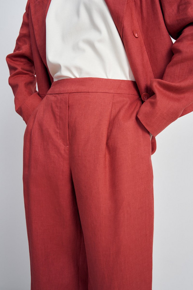 Женские брюки из 100% льна с защипами — прекрасный выбор для тех, кто ценит комфорт, стиль и натуральные материалы. Прямой силуэт и средняя посадка делают их удобными и практичными для повседневной носки, а резинка на поясе обеспечивает идеальную посадку. Защипы добавляют изысканности и стиля этим брюкам, делая их необычными и привлекательными. Тип карманов с отрезным бочком придает брюкам практичность и функциональность, позволяя вам носить с собой необходимые мелочи. 100% лён обеспечивает отличную вентиляцию и дышащие свойства, что делает эти брюки идеальными для носки в теплое время года.