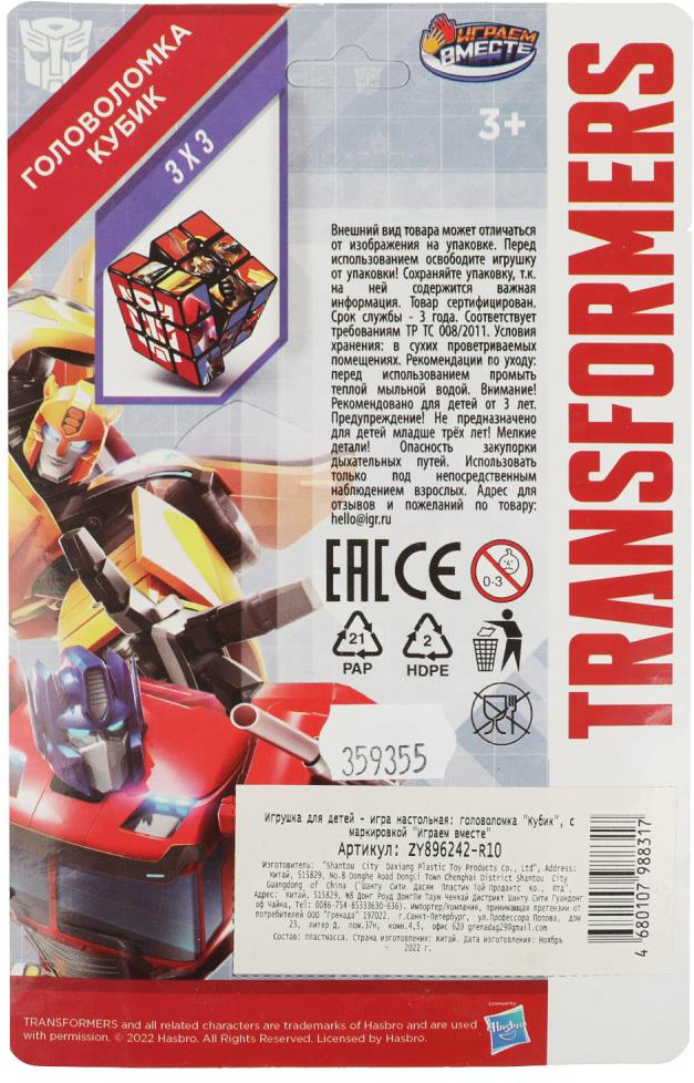Серия: Трансформеры Головоломка-кубик «Трансформеры» ТМ «Играем вместе» — это развивающая логическая игра, которая непременно увлечёт и ребёнка, и взрослого. Эта занимательная головоломка собирается по принципу «кубика-рубика» и отлично тренирует логику и мышление. А собранная в результате многочисленных манипуляций с кубиком фигура принесёт юному любознайке много радости, и он будет гордиться тем, что у него получилось решить эту головоломку. |