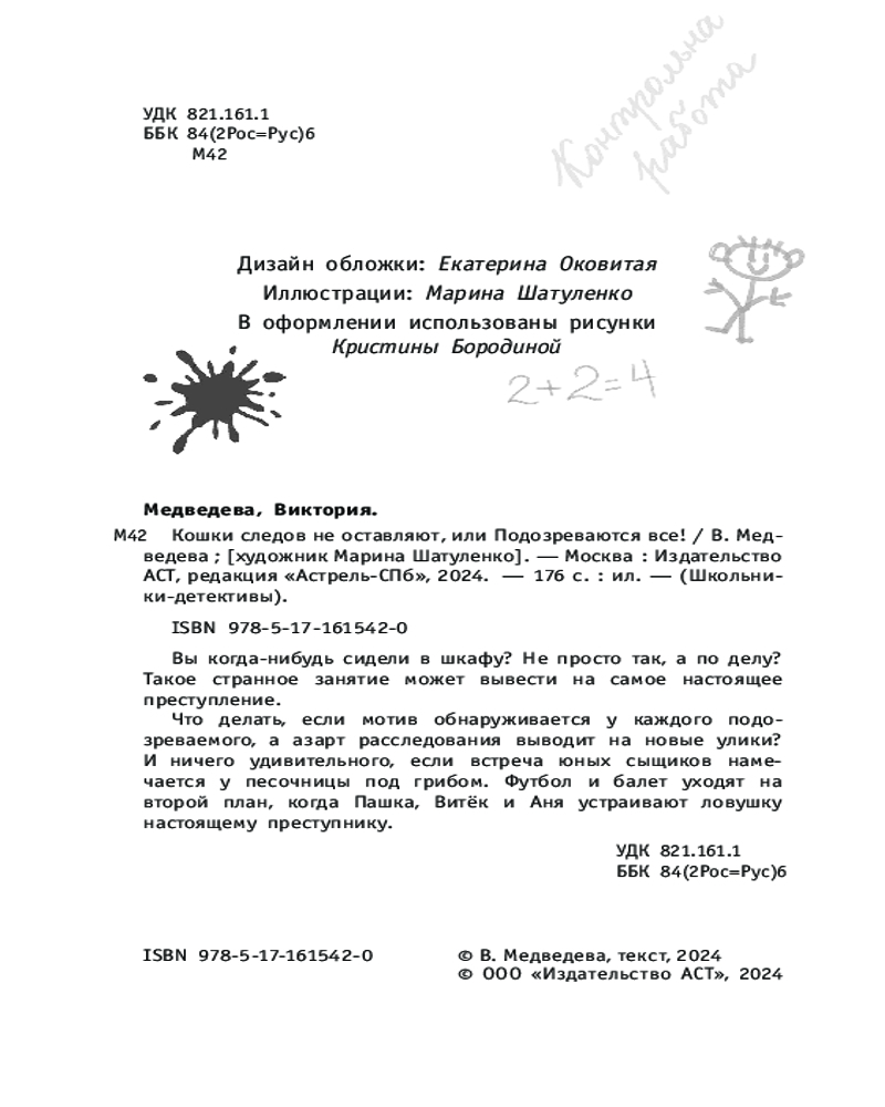 Серия: Школьники-детективы Вы когда-нибудь сидели в шкафу? Не просто так, а по делу? Такое странное занятие может вывести на самое настоящее преступление. Что делать, если мотив обнаруживается у каждого подозреваемого, а азарт расследования выводит на новые следы? И ничего удивительного, если встреча юных сыщиков намечается у песочницы под грибом. Футбол и балет уходят на второй план, когда Пашка, Витёк и Аня устраивают ловушку настоящему преступнику. |