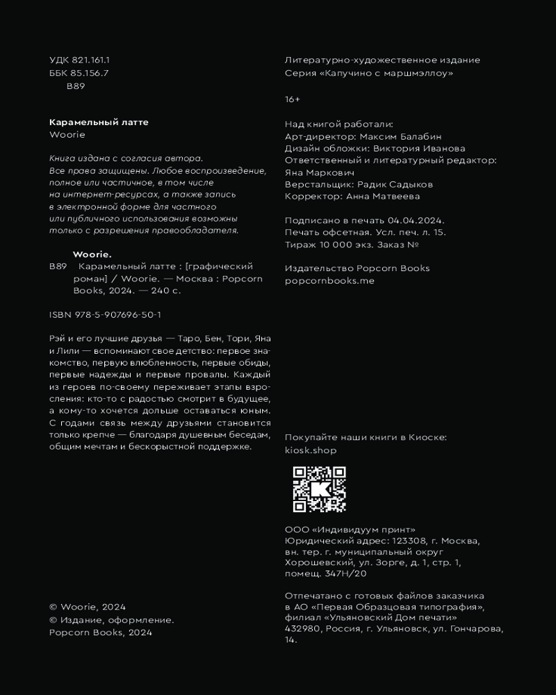 Серия: Капучино с маршмэллоу Рэй и его лучшие друзья — Таро, Бен, Тори, Яна и Лили — вспоминают свое детство: первое знакомство, первую влюбленность, первые обиды, первые надежды и первые провалы. Каждый из героев по‑своему переживает этапы взросления: кто‑то с радостью смотрит в будущее, а кому‑то хочется дольше оставаться юным. С годами связь между друзьями становится только крепче — благодаря душевным беседам, общим мечтам и бескорыстной поддержке. |